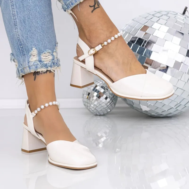 Pantofi cu Toc Gros 1153-3 Bej | Mei