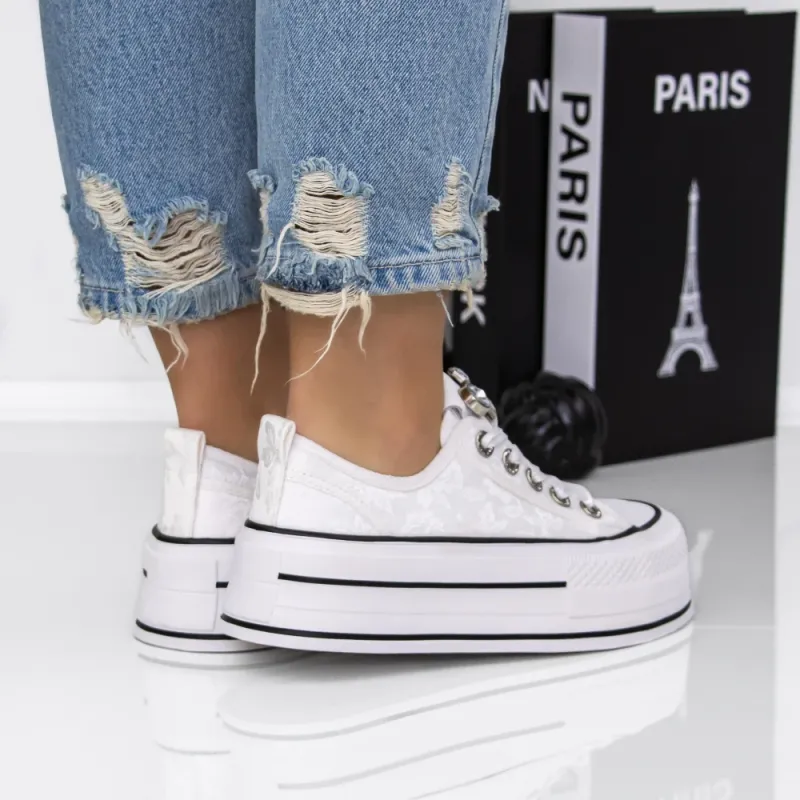 La Reina găsești Pantofi Sport Dama cu Platforma L906-1 Alb | Mei. Culoarea Alb vibrant, împreună cu materiale de calitate și design modern, te vor impresiona! Reina este un magazin online care oferă o gamă variată de produse pentru femei, bărbați și copii. Aici găsești încălțăminte, îmbrăcăminte, genți și accesorii. Livrarea este rapidă, iar termenul de retur este de 30 de zile.