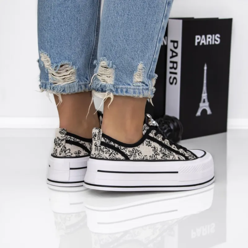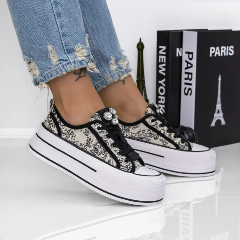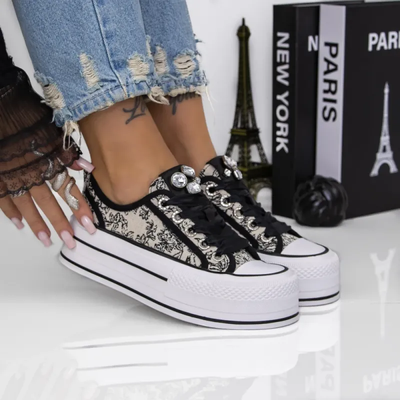 Pantofi Sport Dama cu Platforma L906-1 Negru-Bej | Mei
