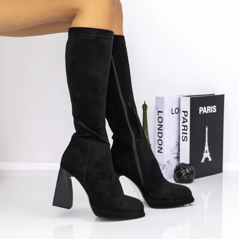 Cizme Dama cu Toc gros 3AD30 Negru | Mei