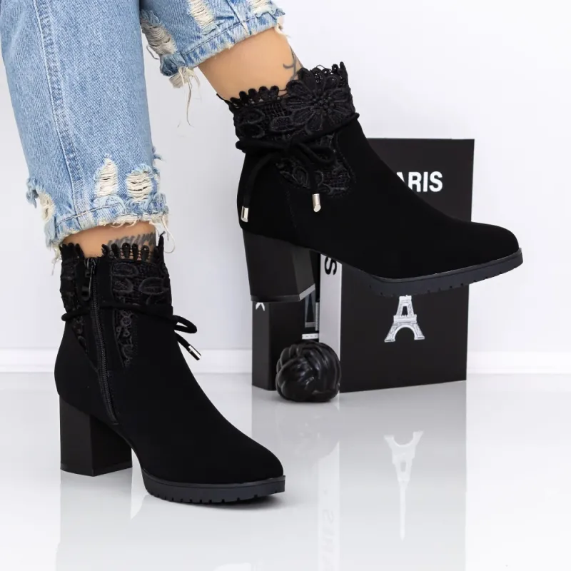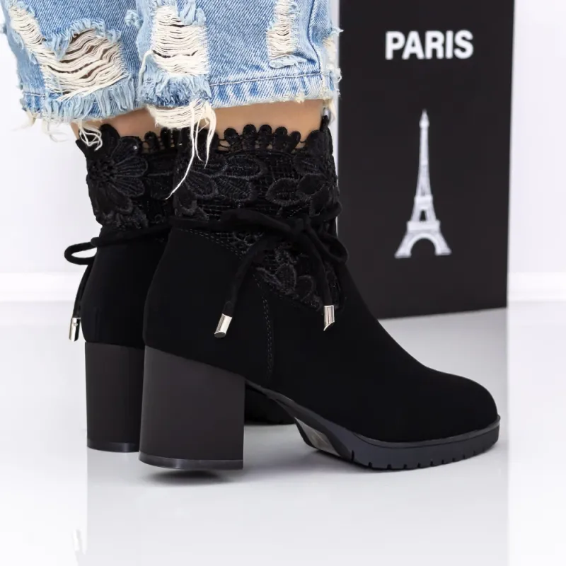 Botine Dama cu Toc gros 3AH18 Negru | Mei