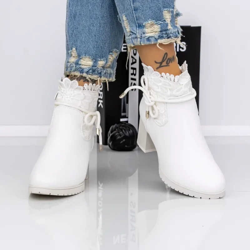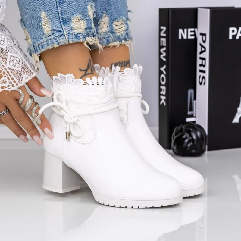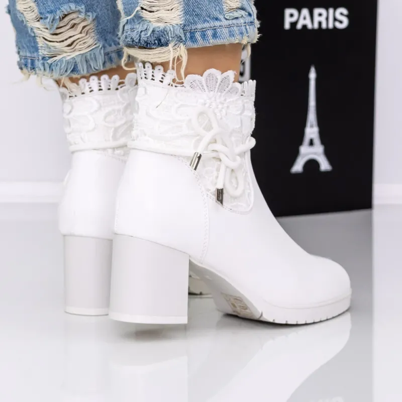 Botine Dama cu Toc gros 3AH18 Alb | Mei