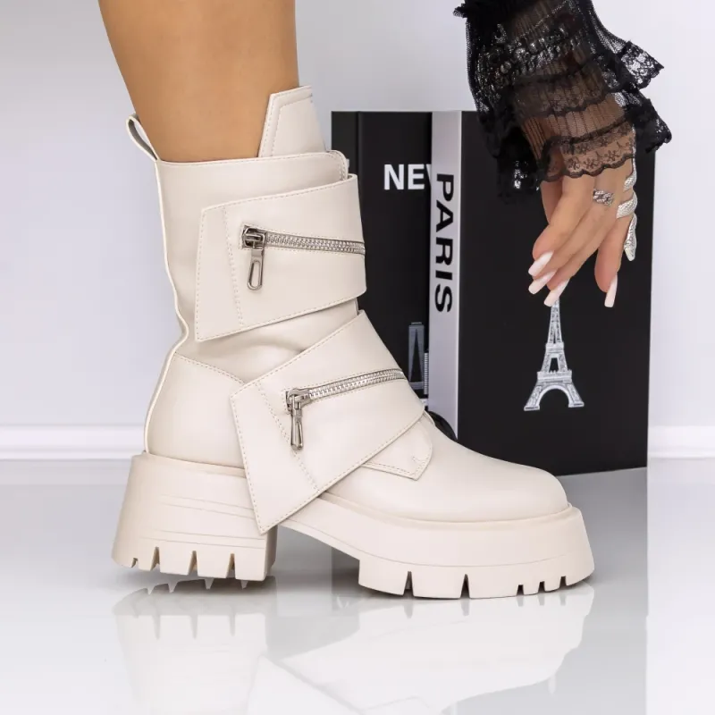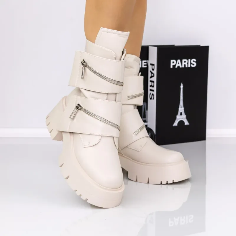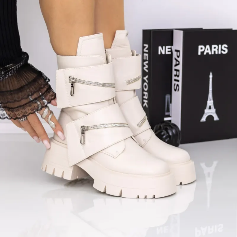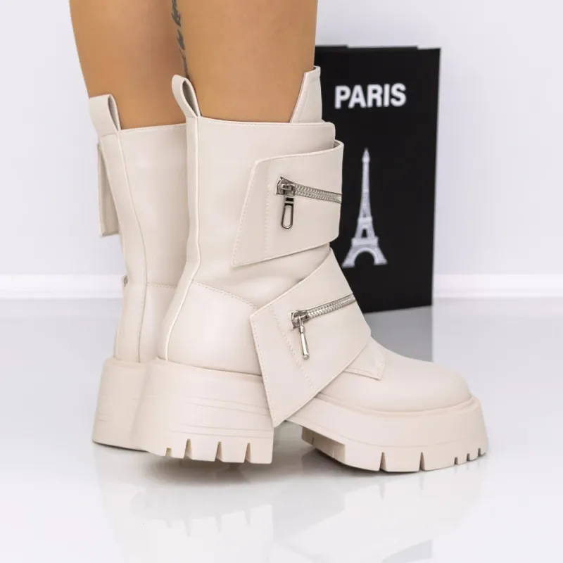 Ghete Dama cu Platforma 3AD11 Bej | Mei