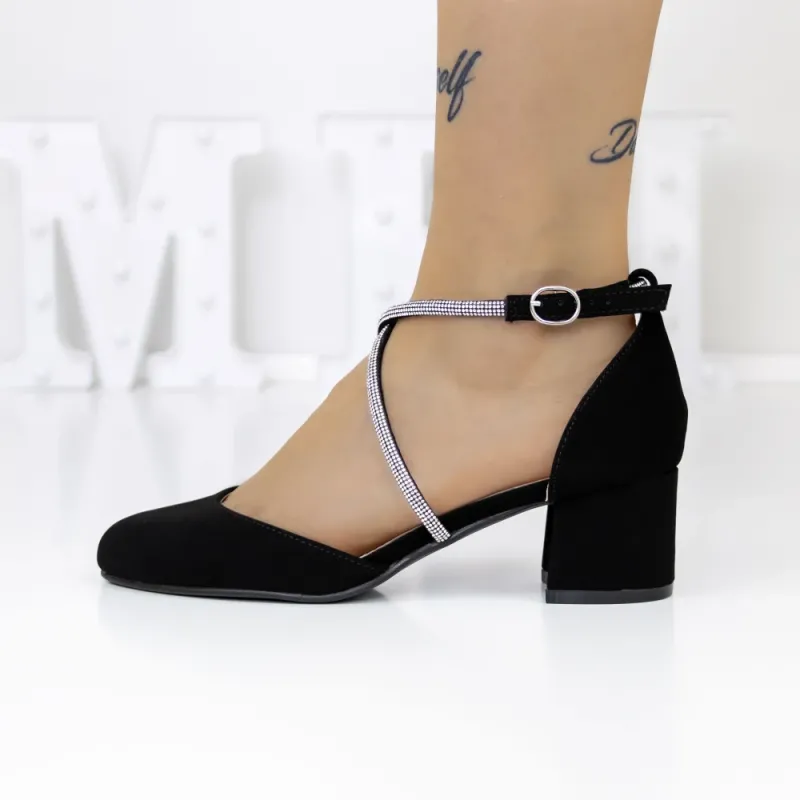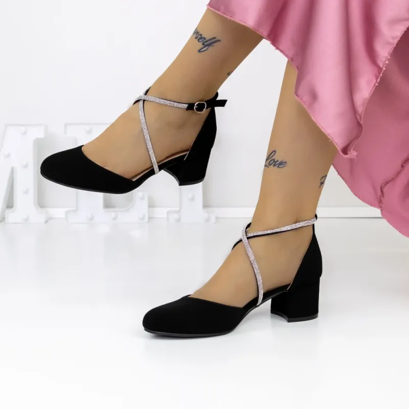 Pantofi cu Toc gros 2YXD62 Negru » Reina.Ro