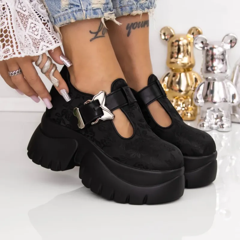 Pantofi cu Platforma 9066-51 Negru | Mei