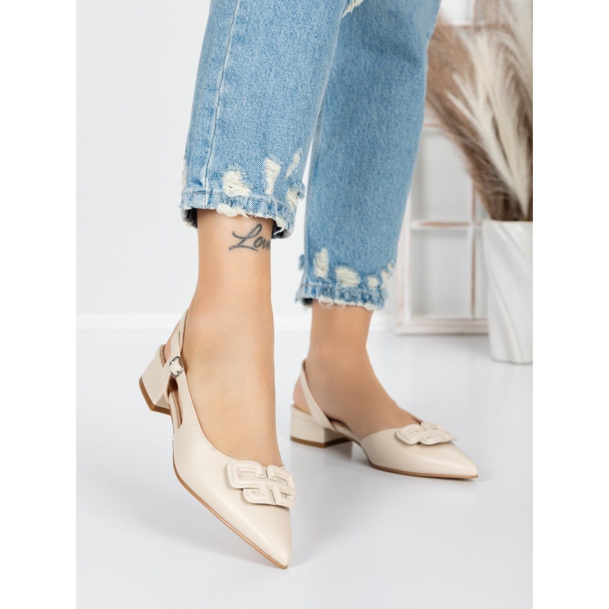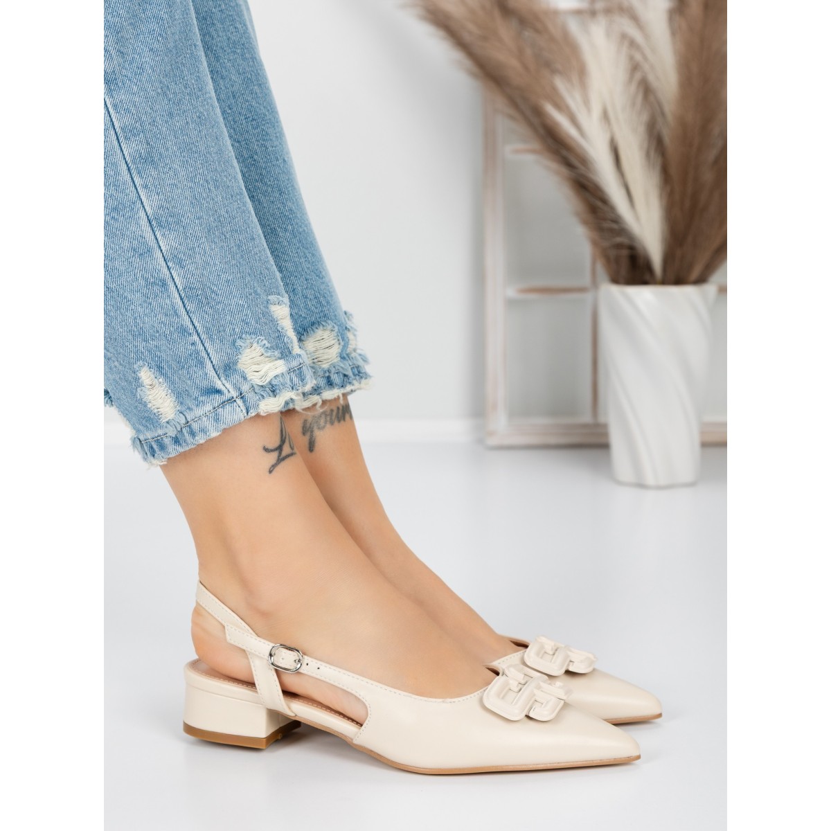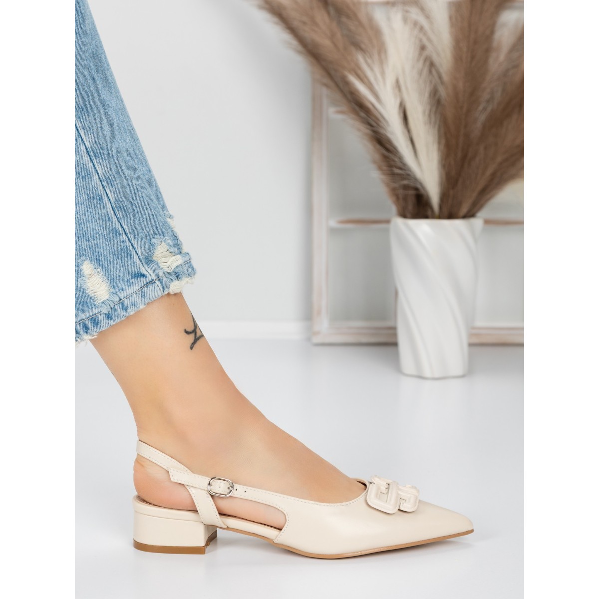 Pantofi cu Toc Gros 5YZ12 Bej | Mei