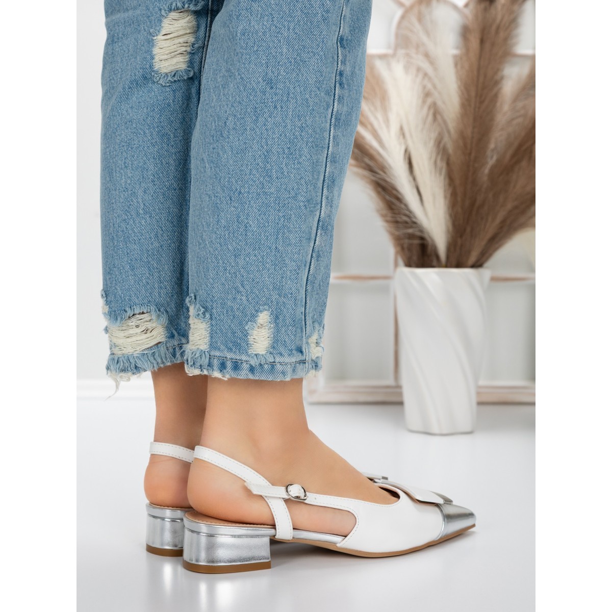 Pantofi cu Toc Gros 5YZ13 Argintiu | Mei