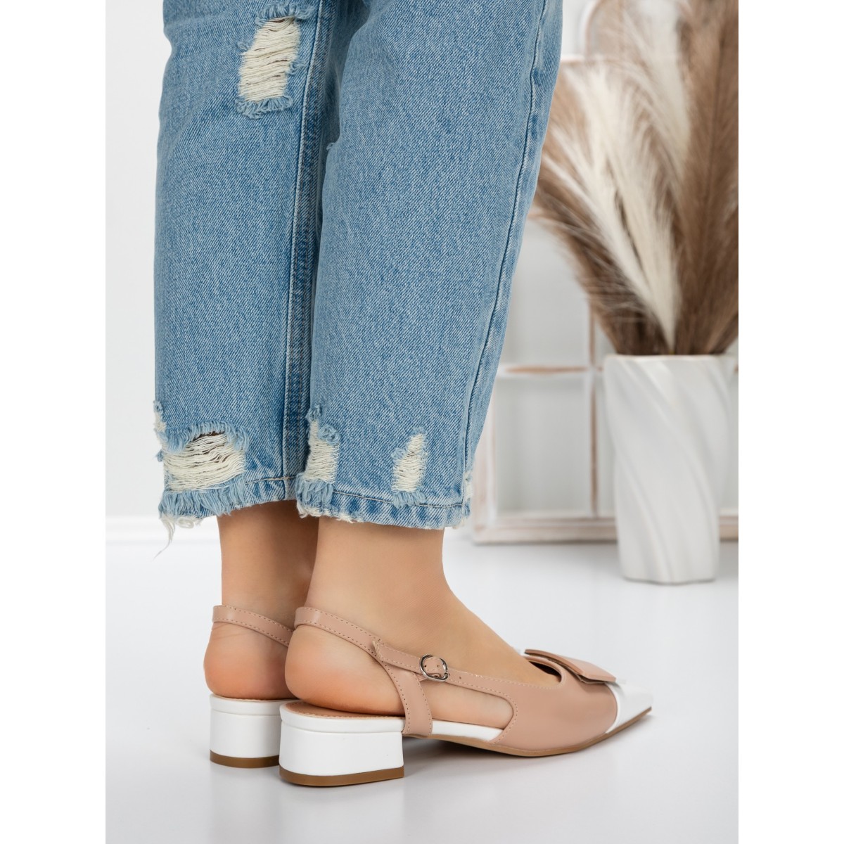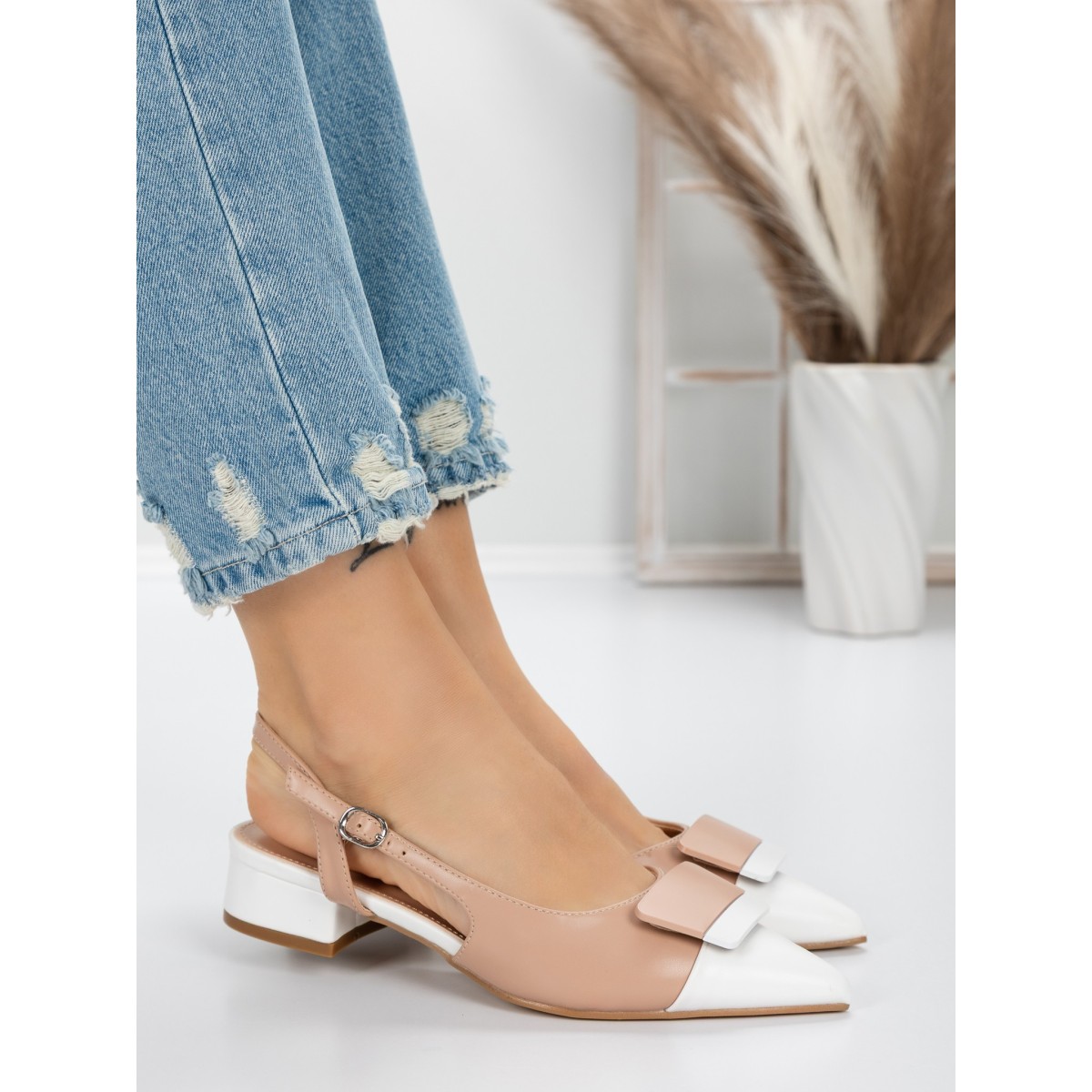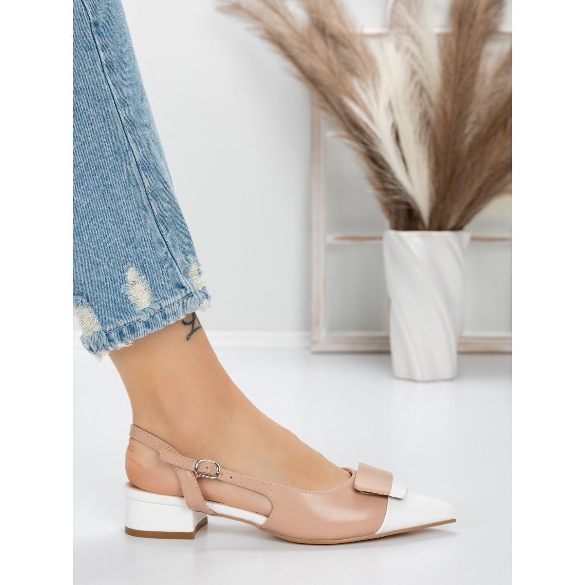 Pantofi cu Toc Gros 5YZ13 Bej | Mei