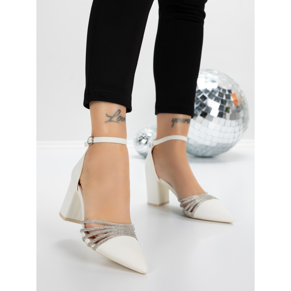 Pantofi cu Toc Gros 5XKK8PD Alb | Mei