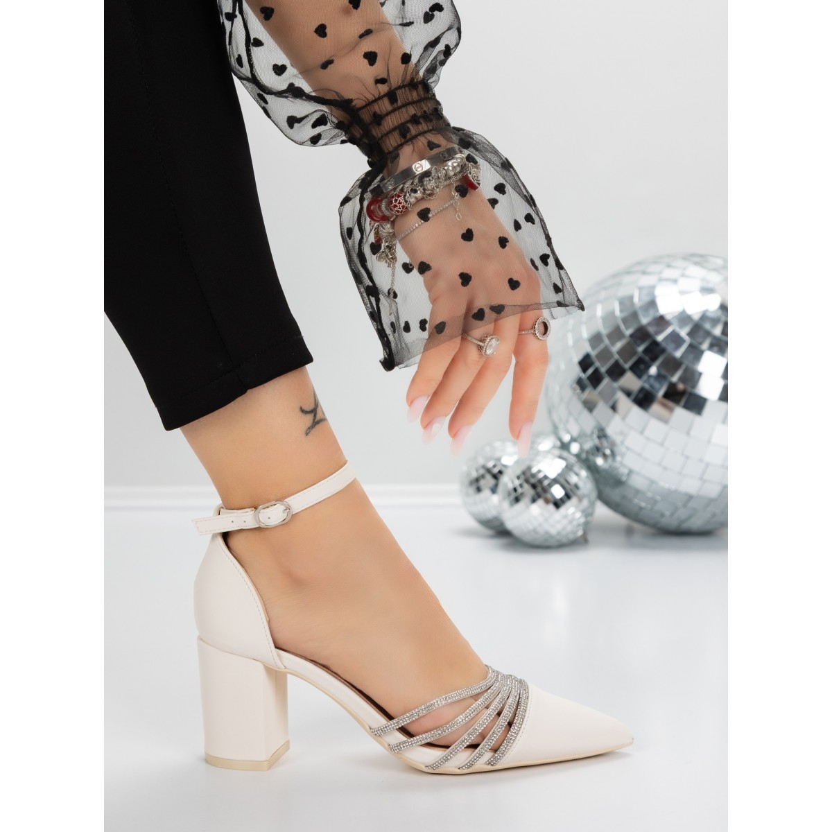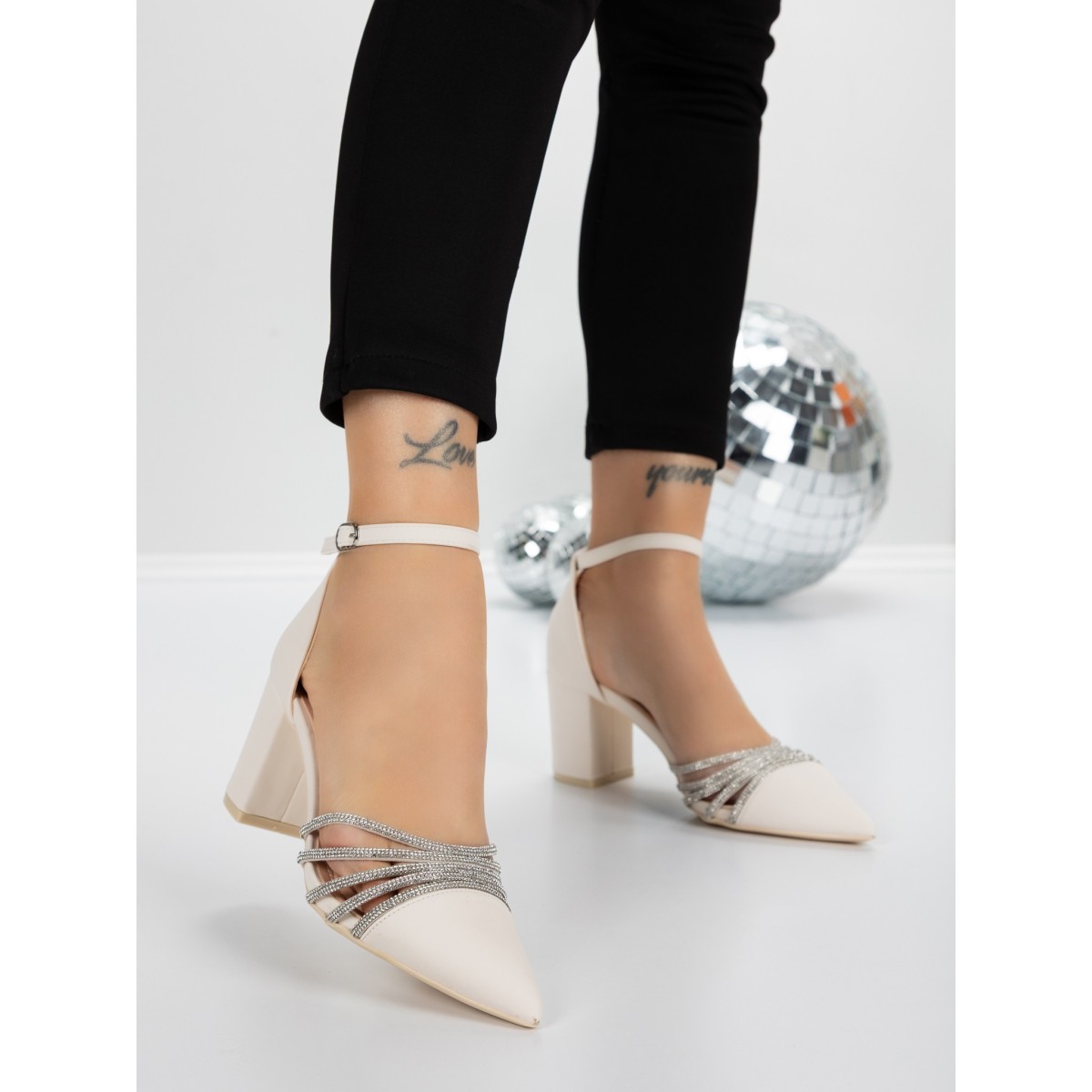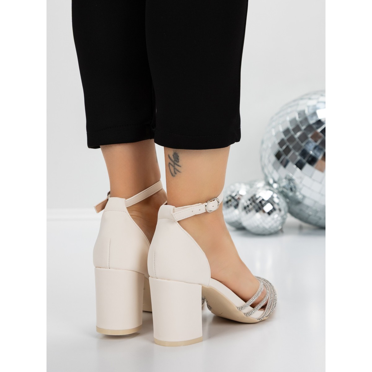 Pantofi cu Toc Gros 5XKK8PD Bej | Mei