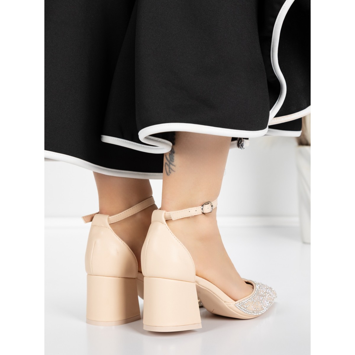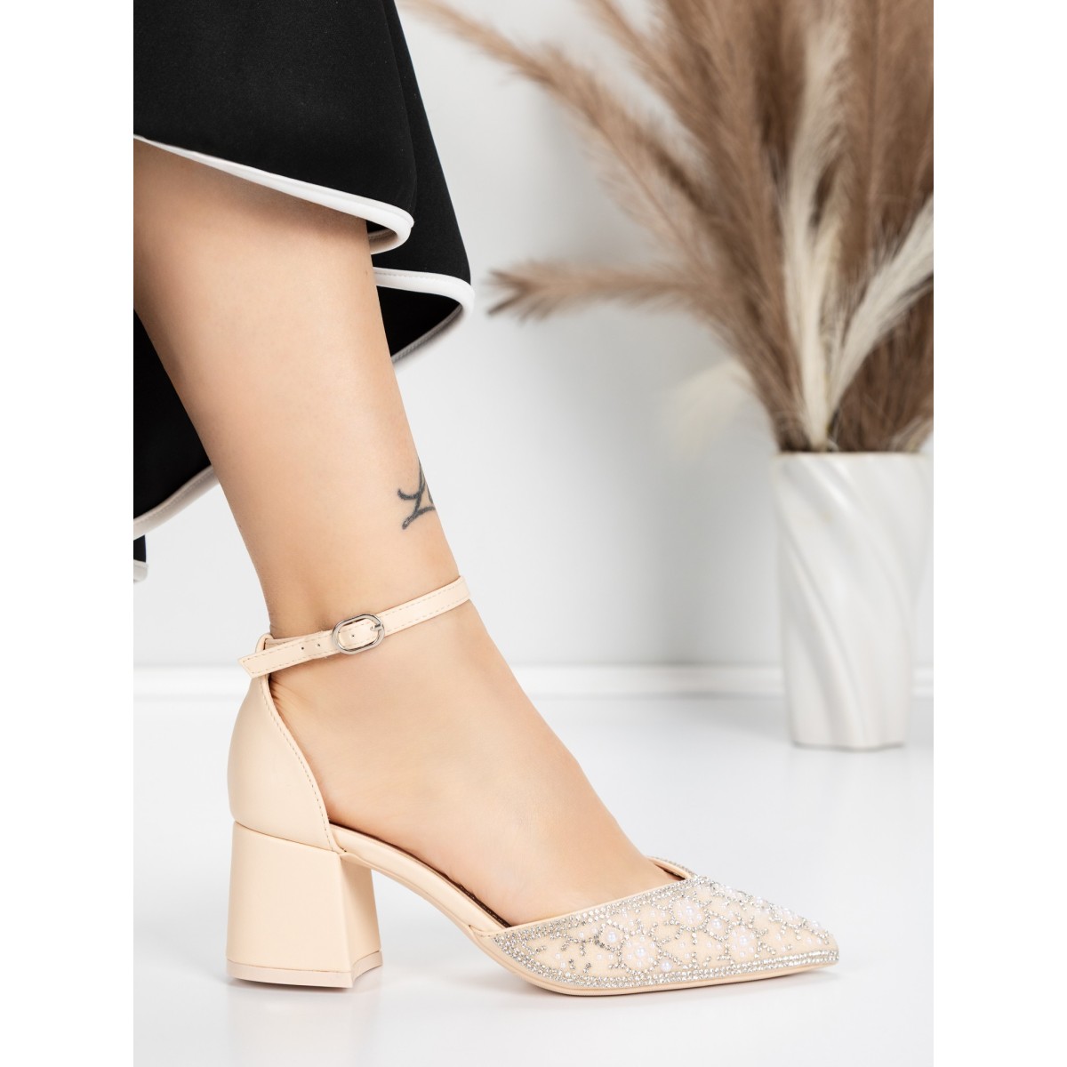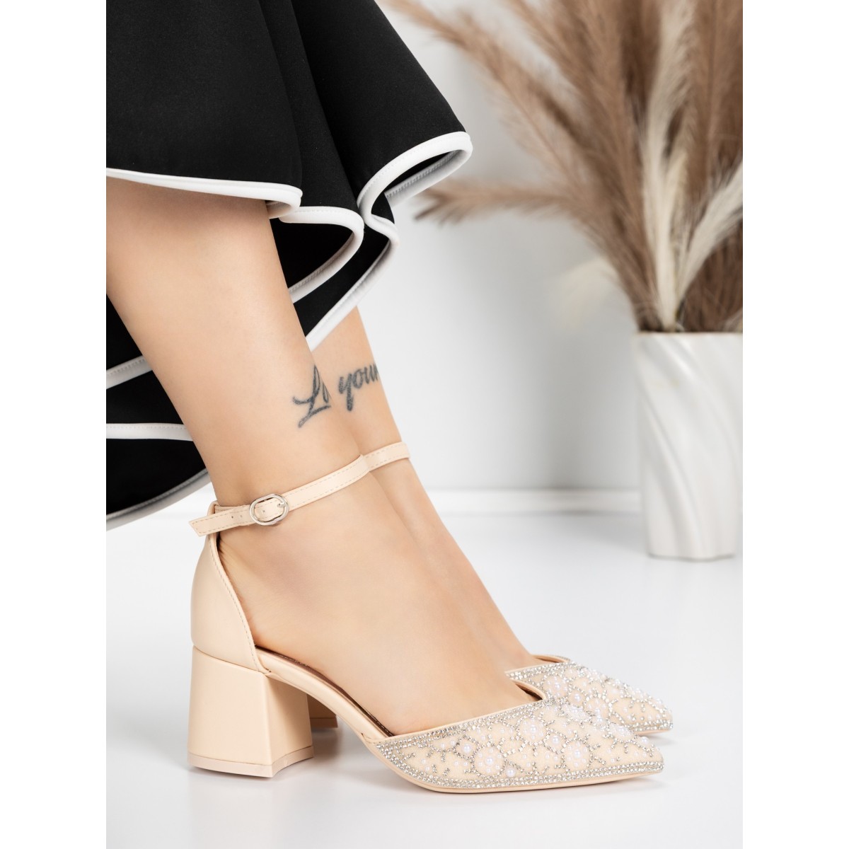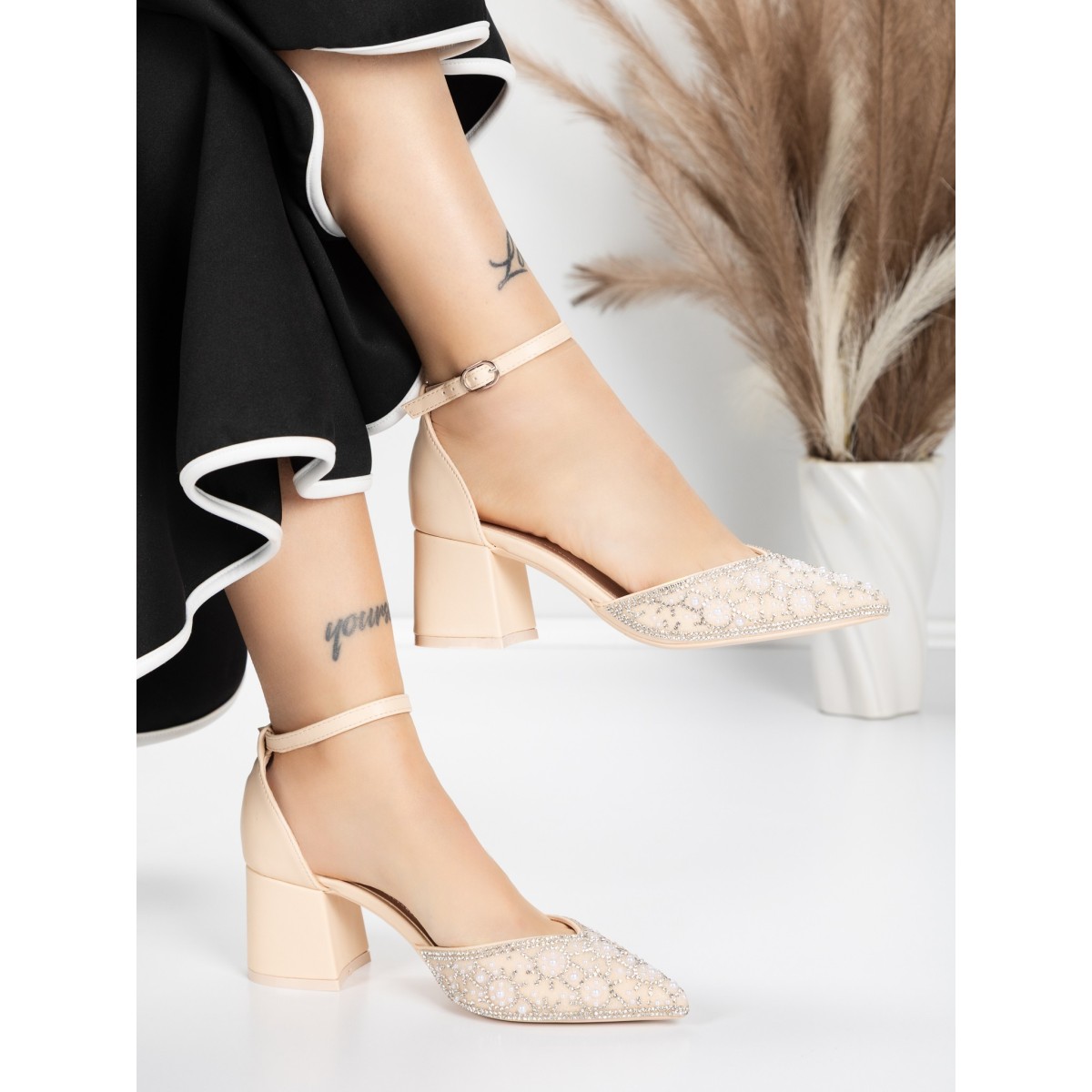 Pantofi cu Toc Gros 5XKK36 Bej | Mei
