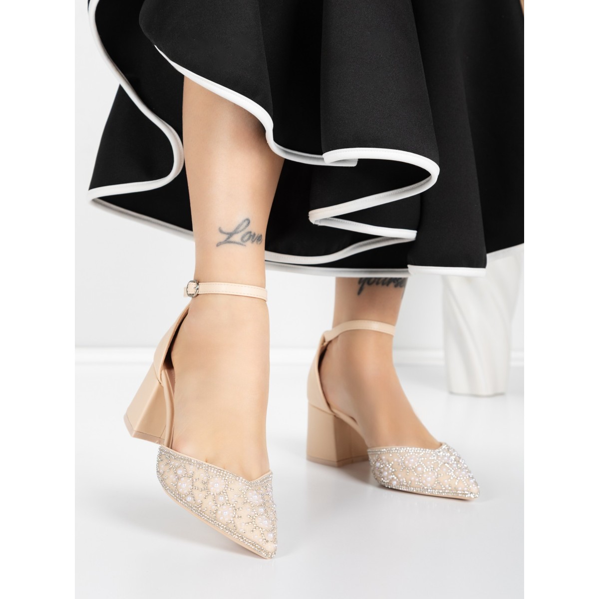 Pantofi cu Toc Gros 5XKK36 BEIGE | MEI