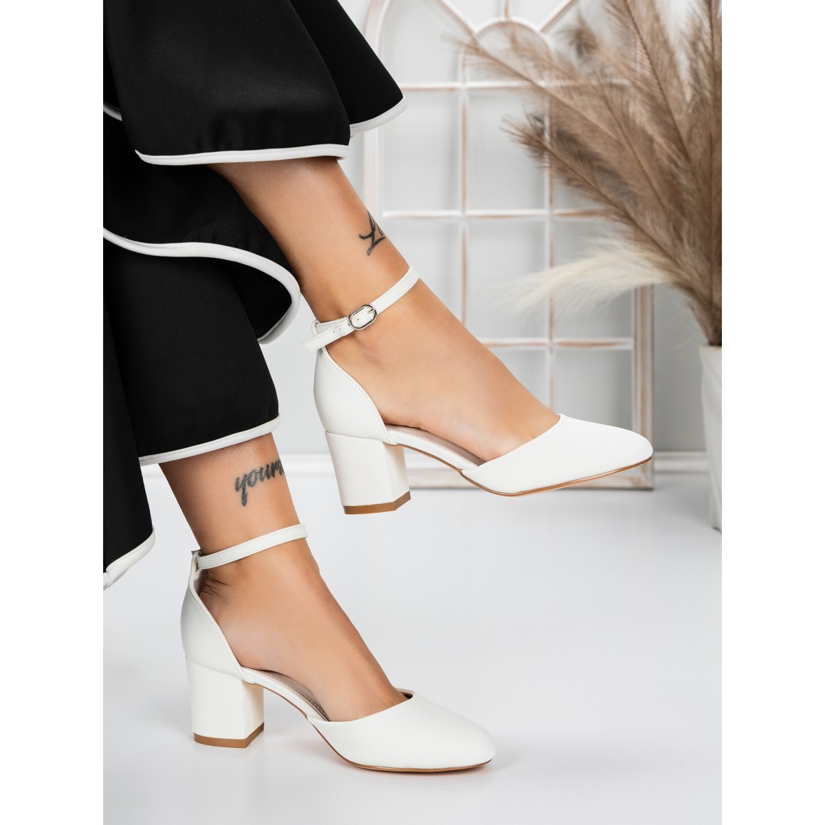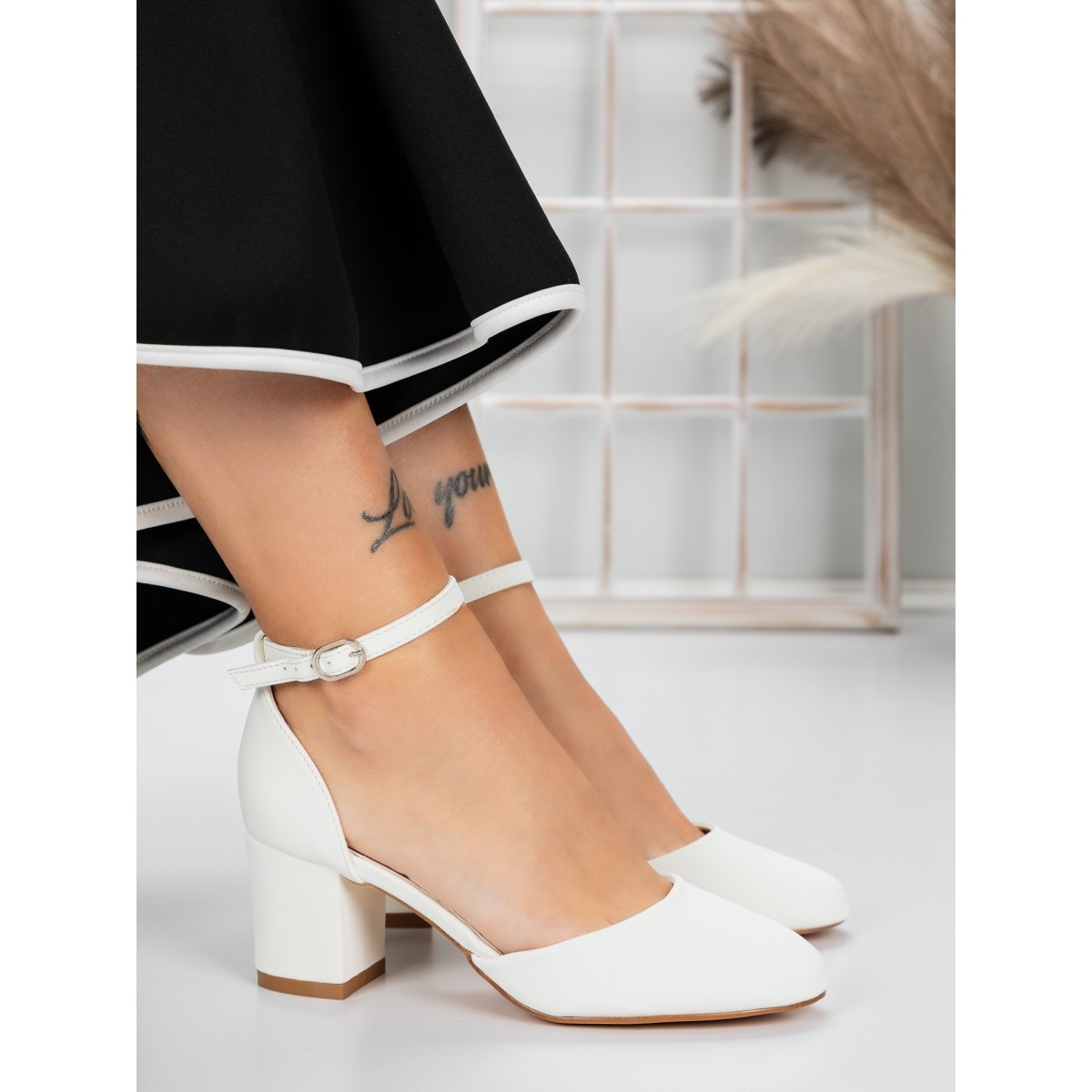 Pantofi cu Toc Gros 3XKK81 Alb | Mei