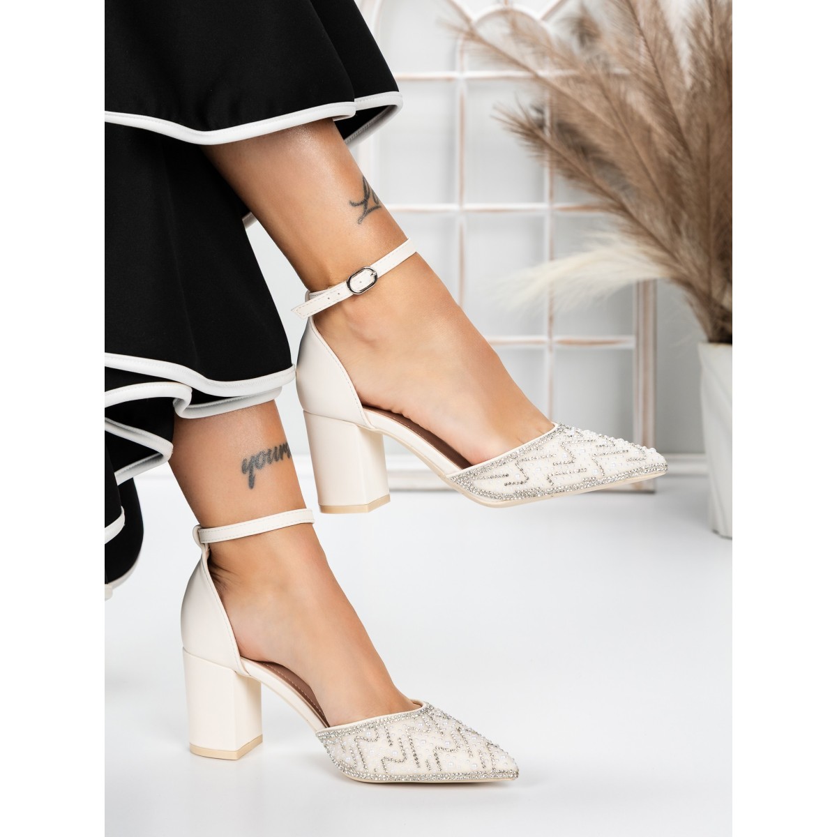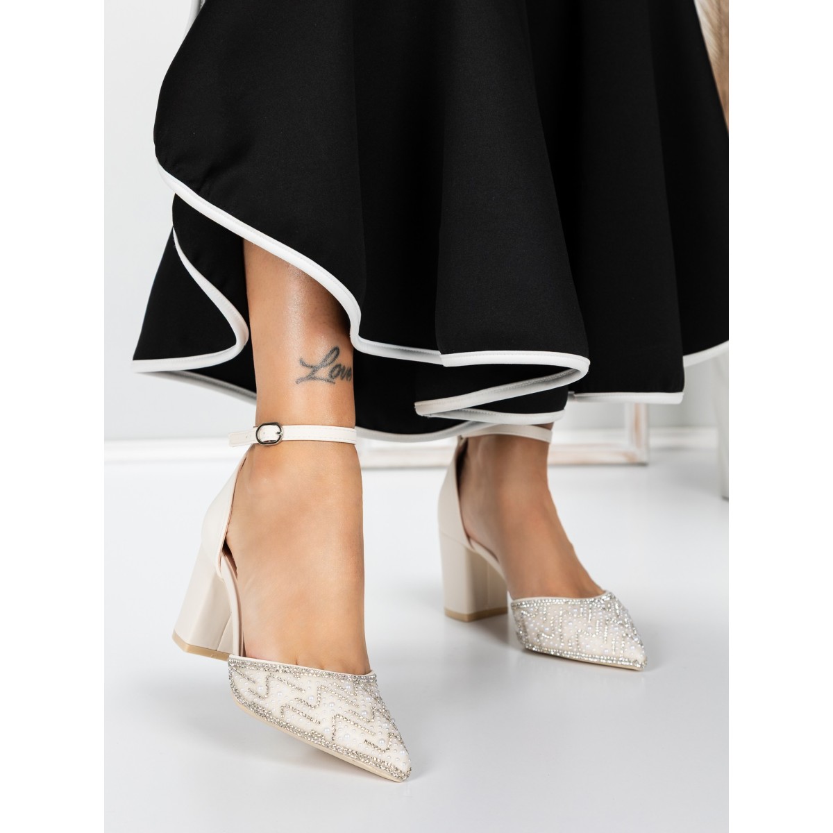 Pantofi cu Toc Gros 5XKK37 BEIGE | MEI