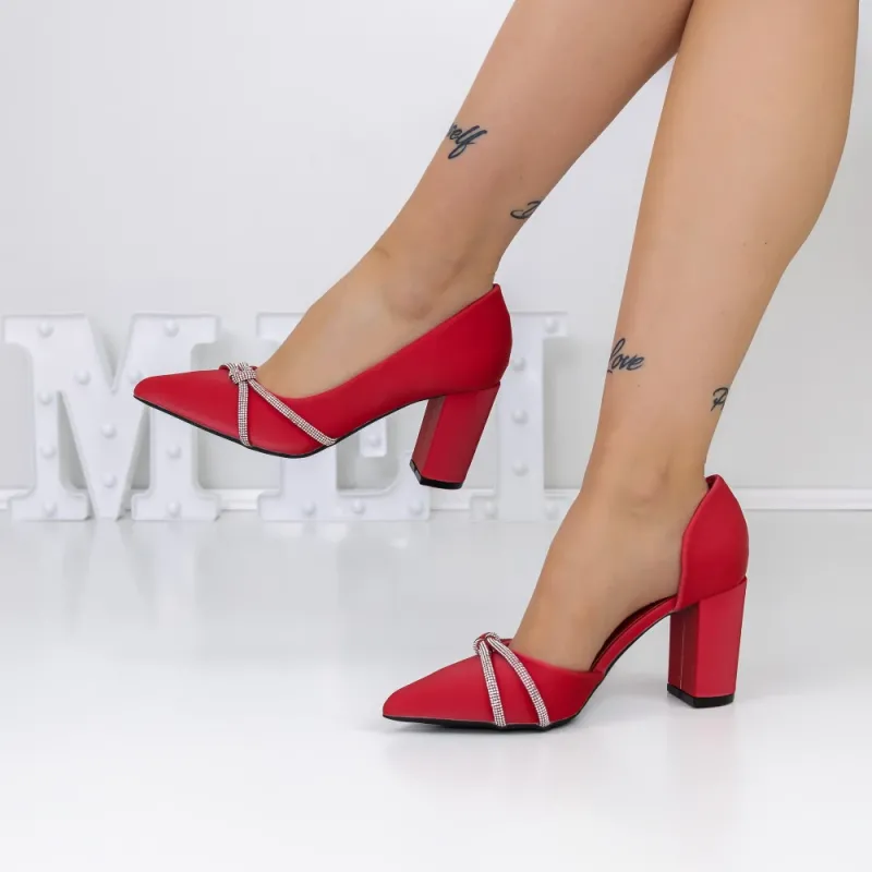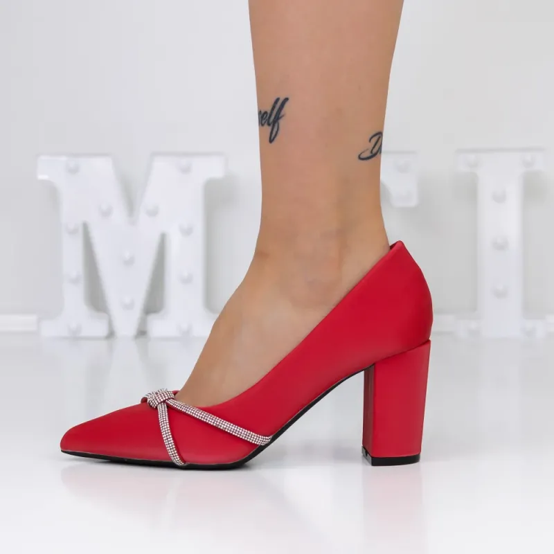 Pantofi cu Toc gros 3XKK16 Rosu » Reina.Ro