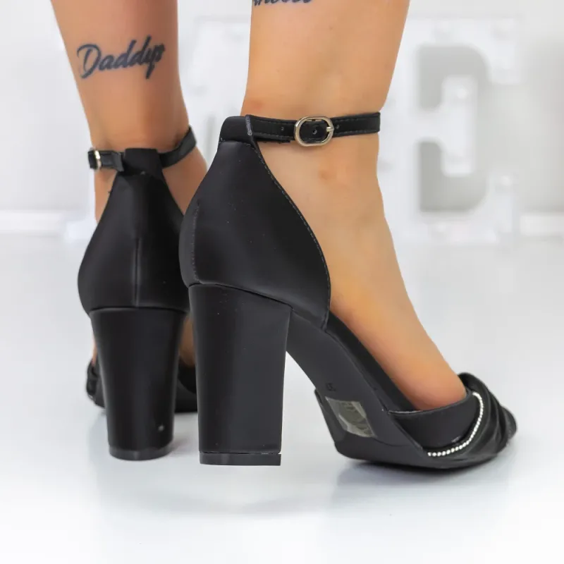 Pantofi cu Toc gros 3XKK18 Negru Mei