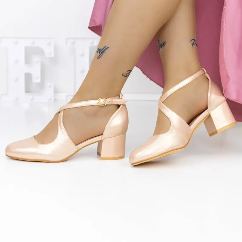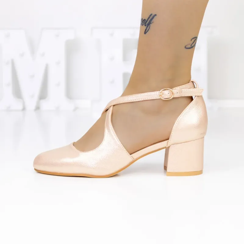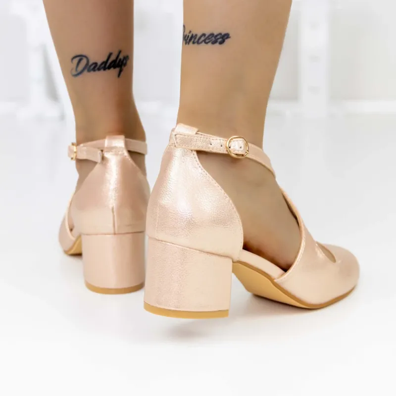 Pantofi cu Toc gros 2YXD30 Champagne Mei