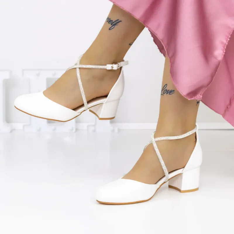 Pantofi cu Toc gros 2YXD62 Alb » Reina.Ro
