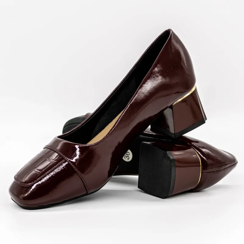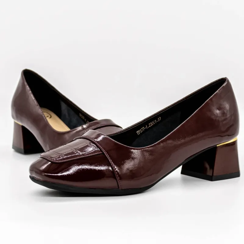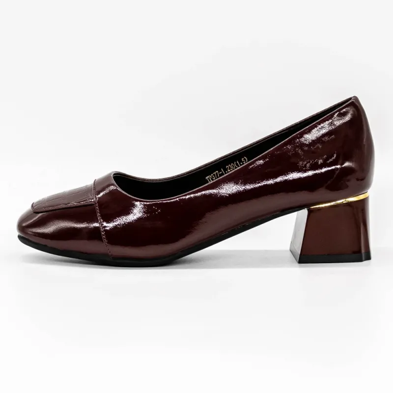 Pantofi cu Toc gros TP377-1 Visiniu | Reina