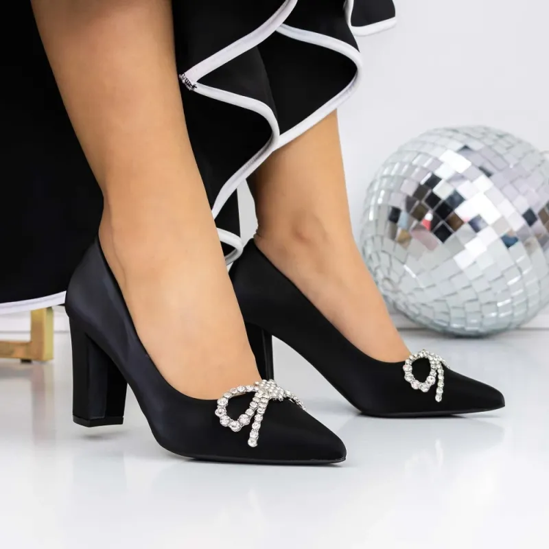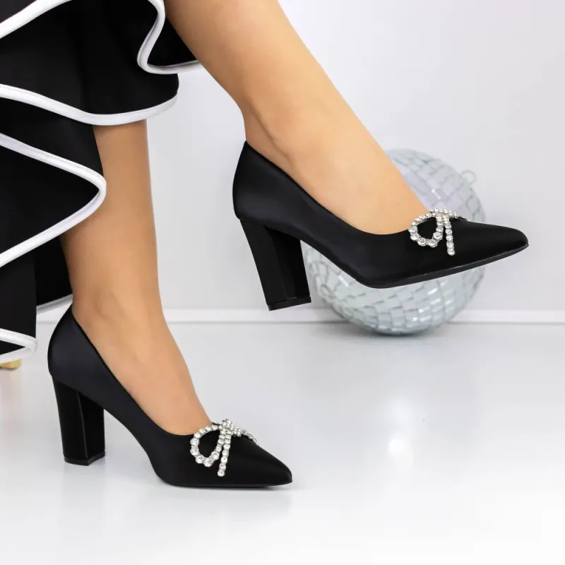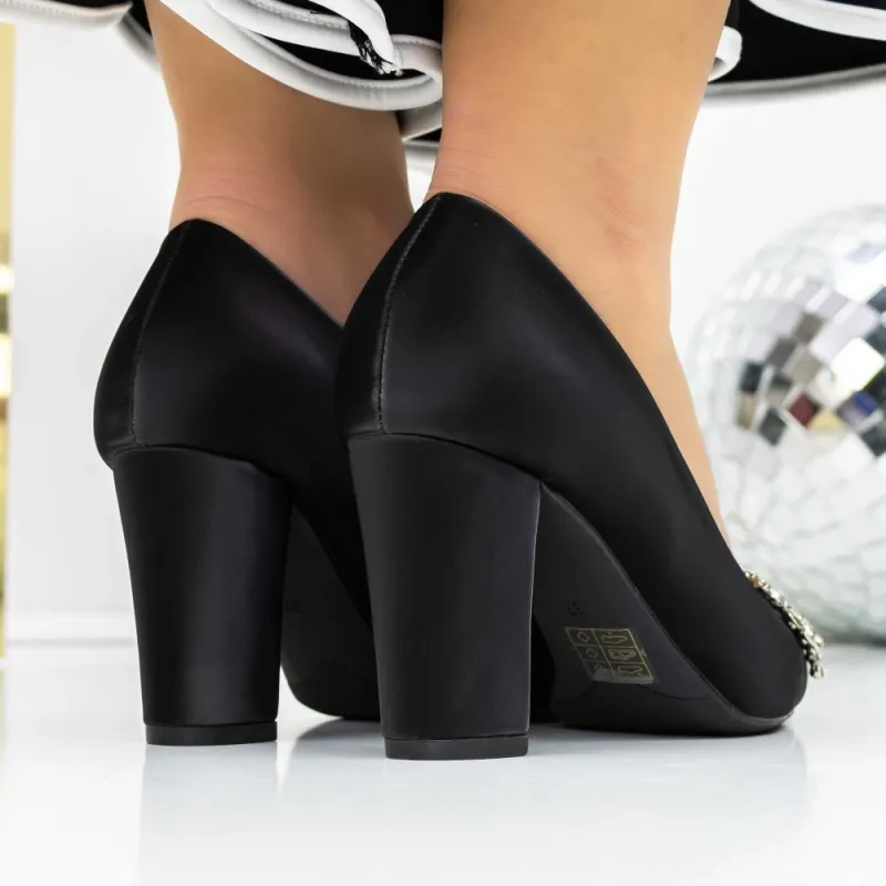 Pantofi cu Toc gros 3XKK71 Negru | Reina