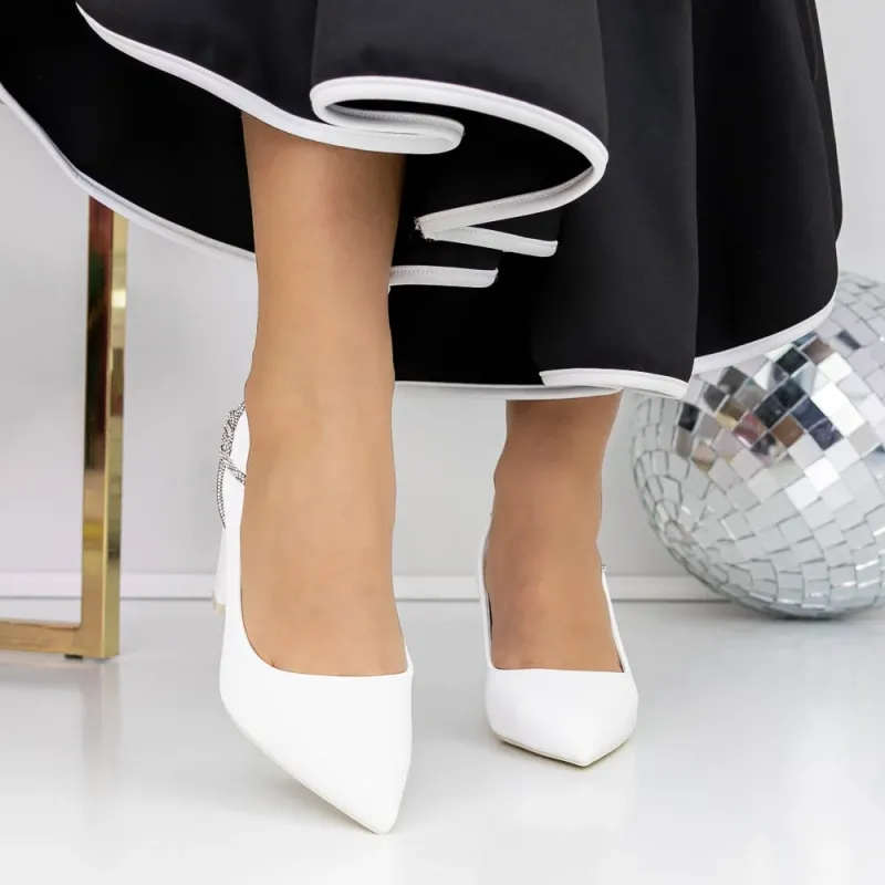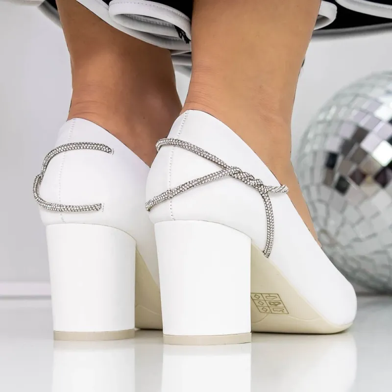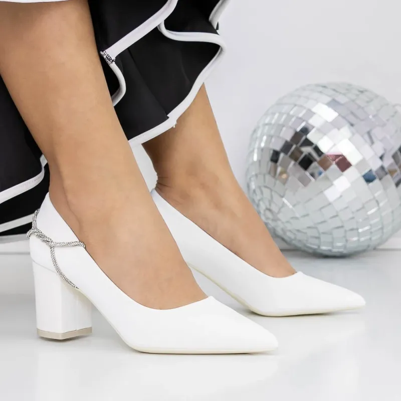 Pantofi cu Toc gros 3XKK72 Alb | Reina
