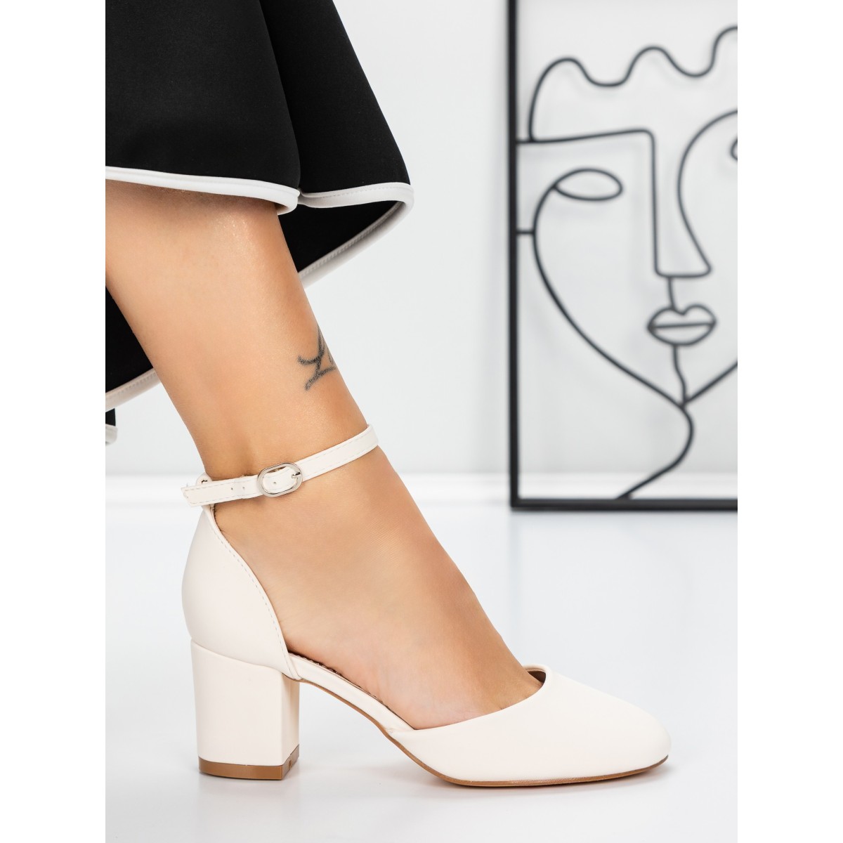 Pantofi cu Toc Gros 3XKK81 Bej | Reina