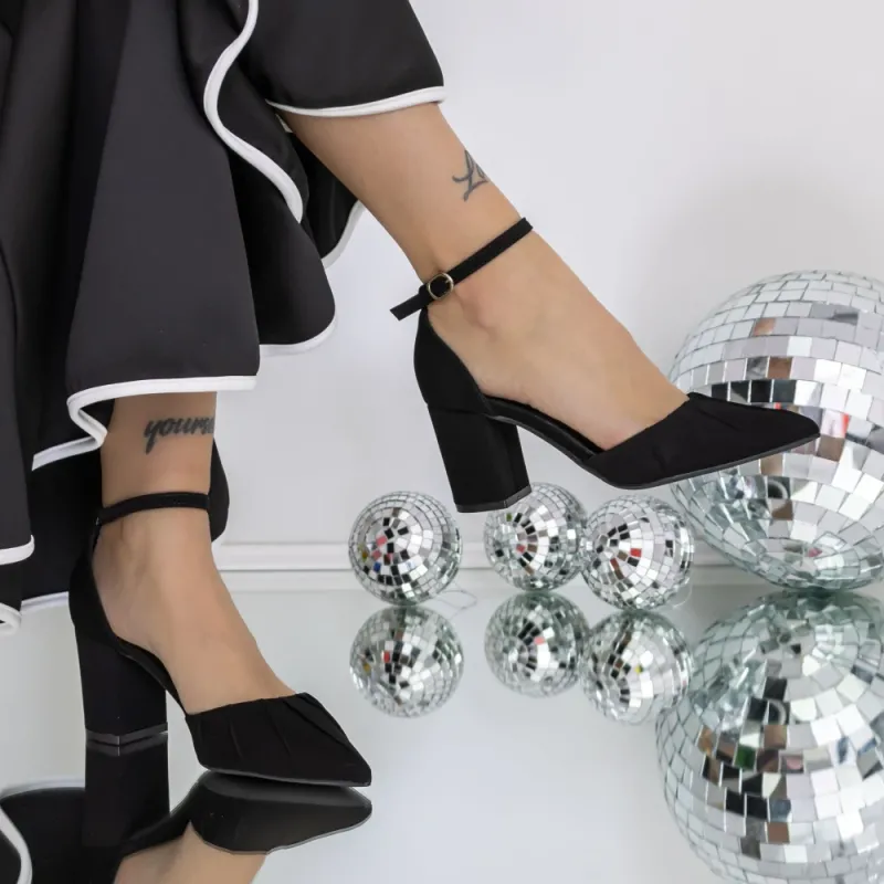 Pantofi cu Toc Gros 3XKK130 Negru | Reina