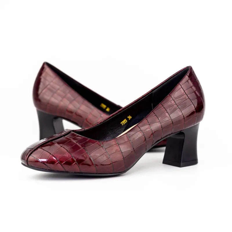 Pantofi cu Toc gros 7395 Visiniu Reina