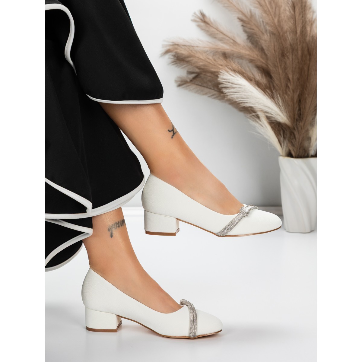 Pantofi cu Toc mic 3XKK99 Alb | Reina
