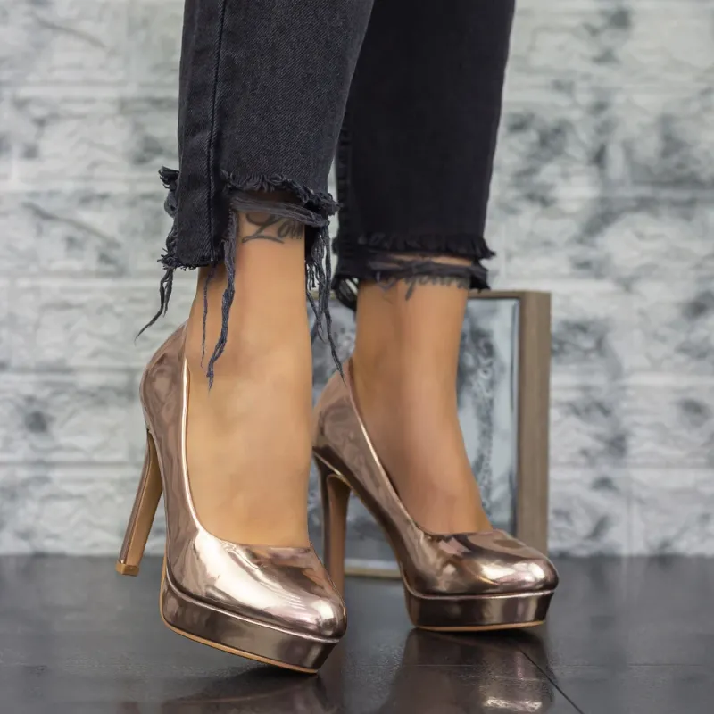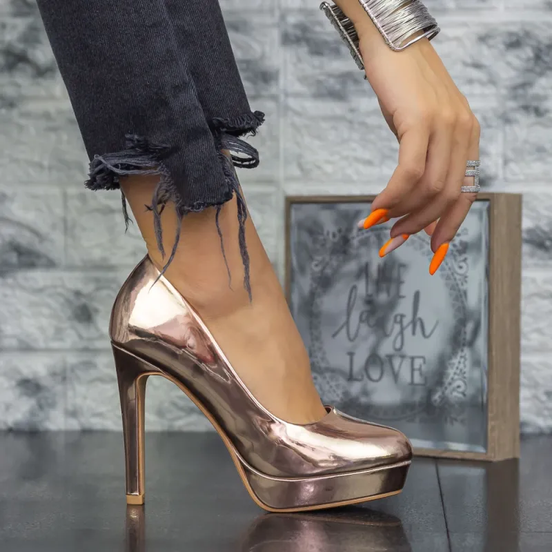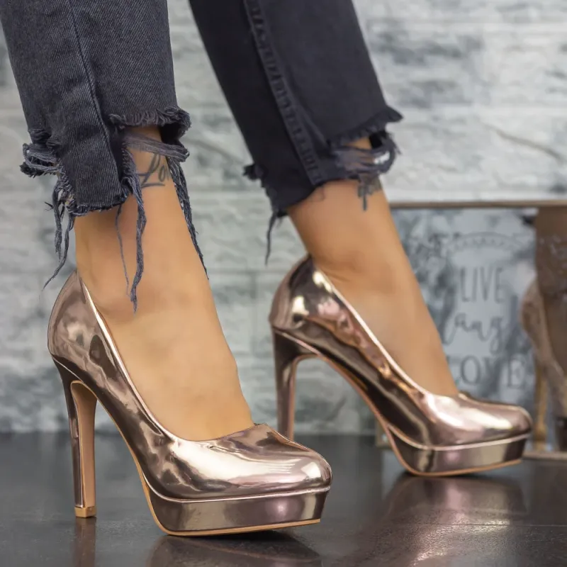 Pantofi cu Toc subtire si Platforma 2YXD32 Champagne Mei