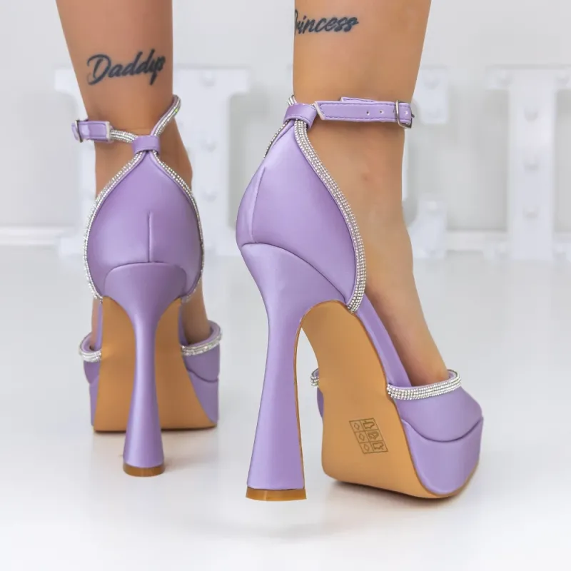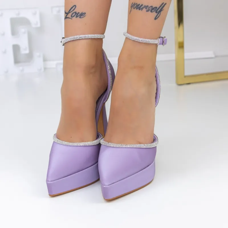 Pantofi cu Toc subtire si Platforma 3XKK8 Mov Mei