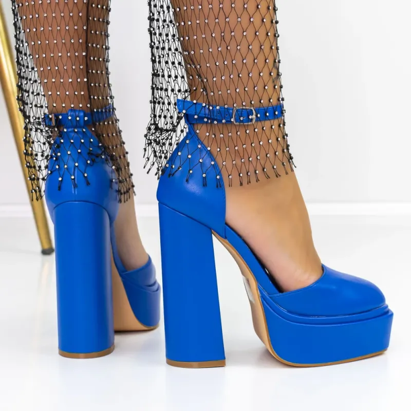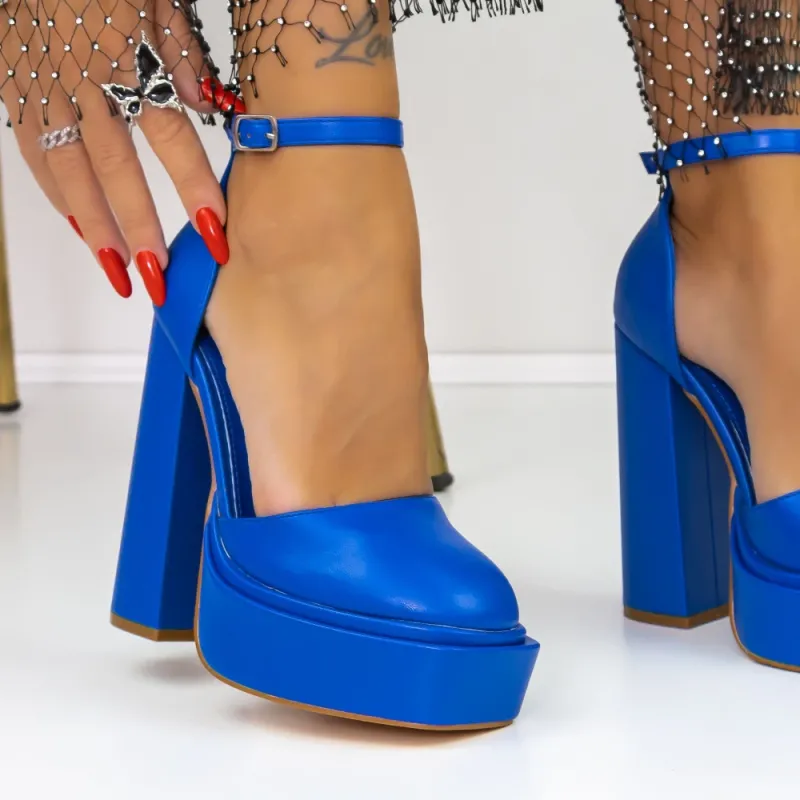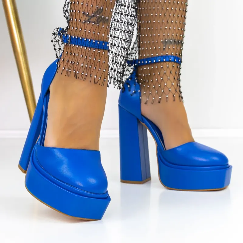 Pantofi cu Toc gros si Platforma 3KV2 Albastru inchis Reina