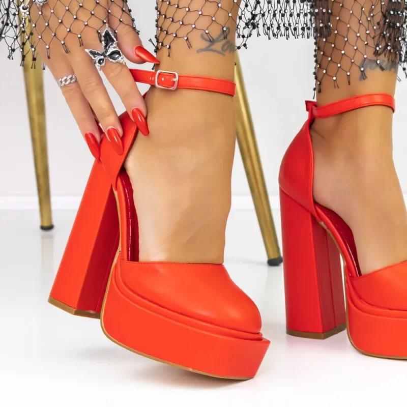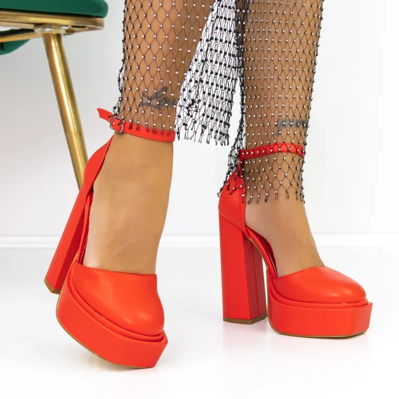 Pantofi cu Toc gros si Platforma 3KV2 Rosu inchis Reina
