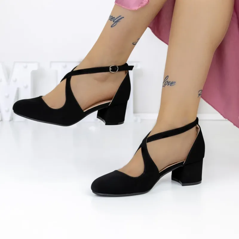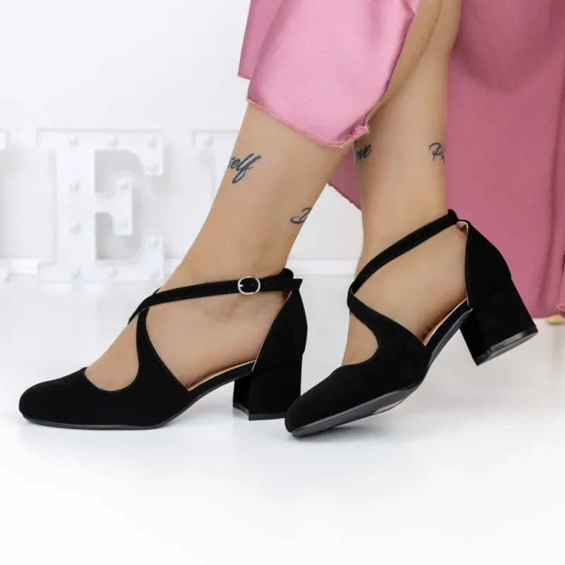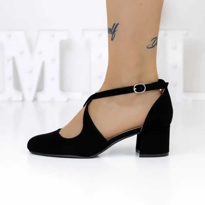 Pantofi cu Toc gros 2YXD30 Negru (K13) Mei