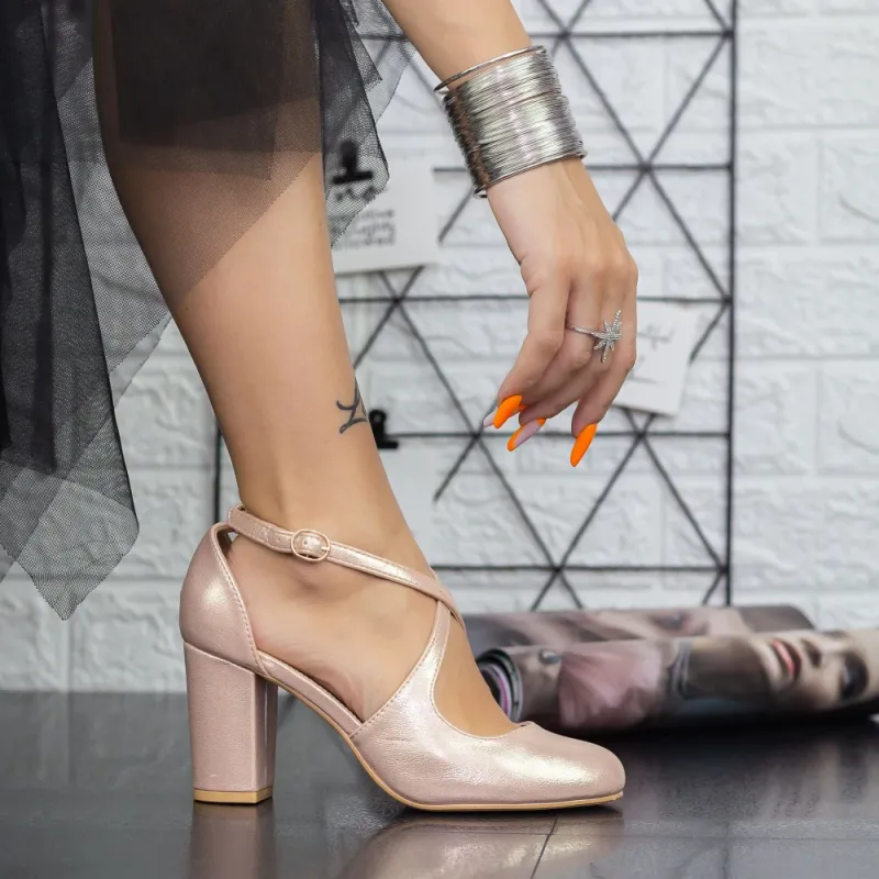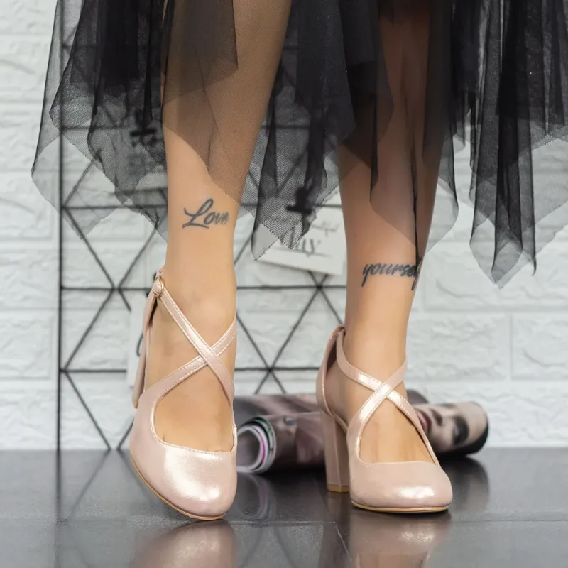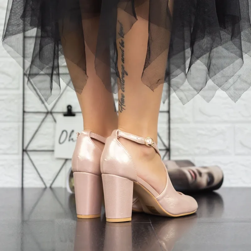 Pantofi cu Toc gros 2YXD31A Champagne (K44) Mei