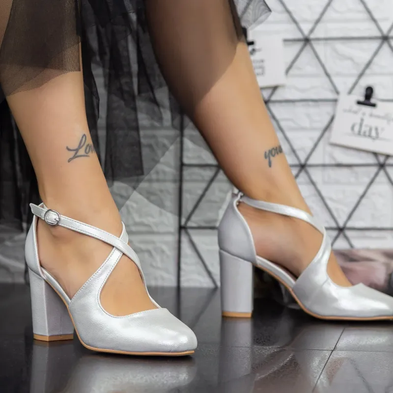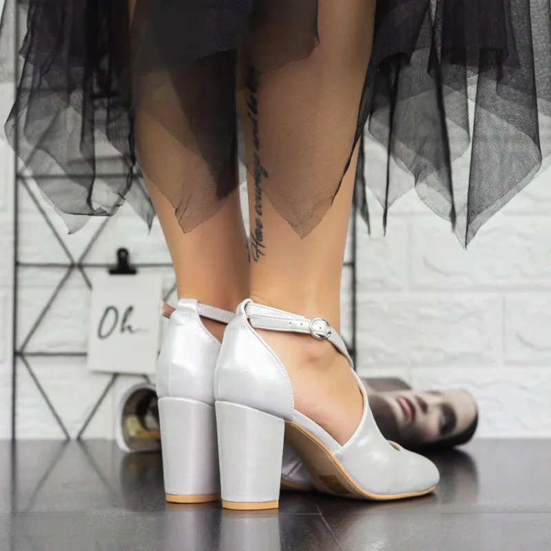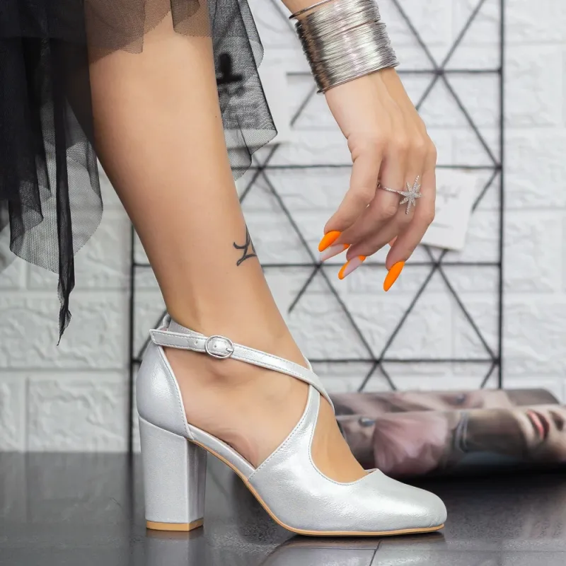 Pantofi cu Toc gros 2YXD31A Argintiu (K44) Mei