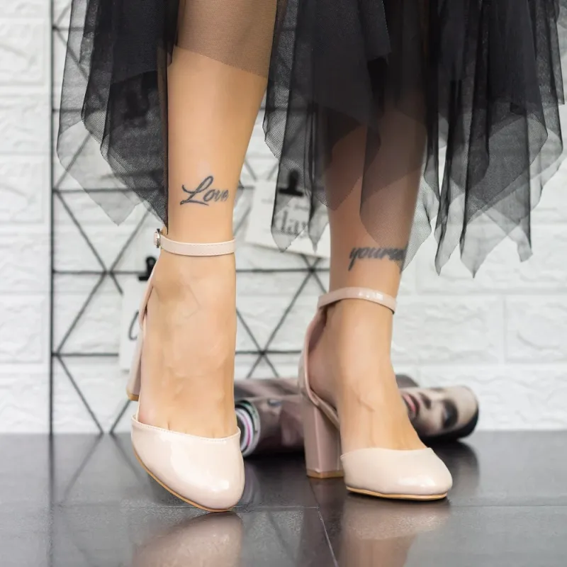 Pantofi cu Toc gros 2YXD50 Bej (K54) Mei