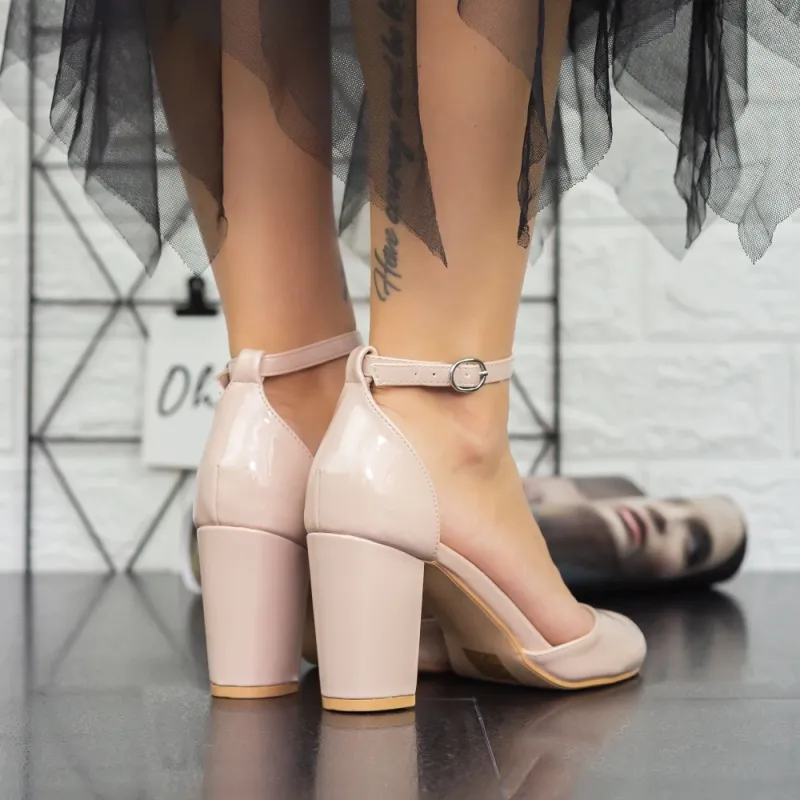 Pantofi cu Toc gros 2YXD50 Bej » Reina.Ro