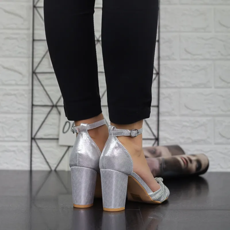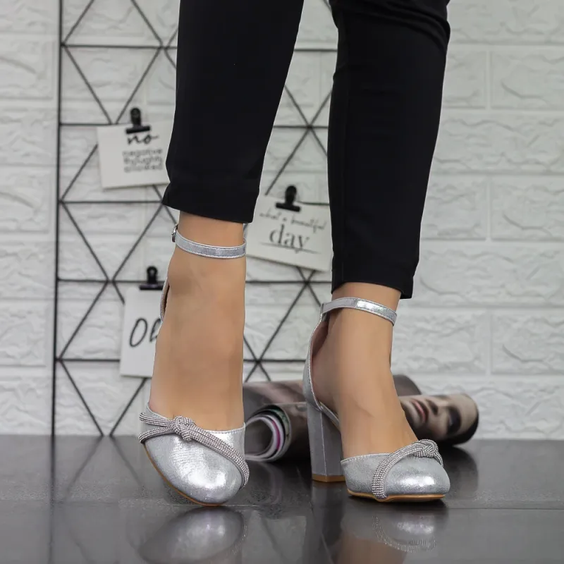 Pantofi cu Toc gros 2YXD51 Argintiu » Reina.Ro