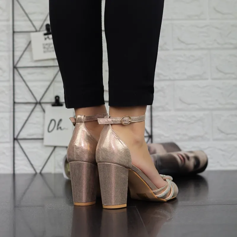 Pantofi cu Toc gros 2YXD51 Champagne (B42) Mei
