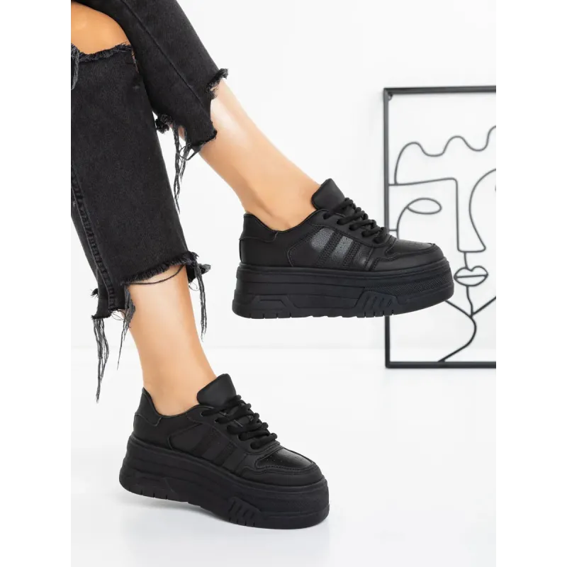 Pantofi Sport Dama cu Platforma 5WL50 Negru | Mei