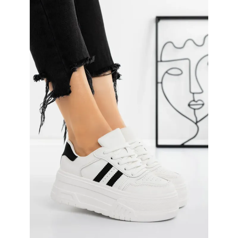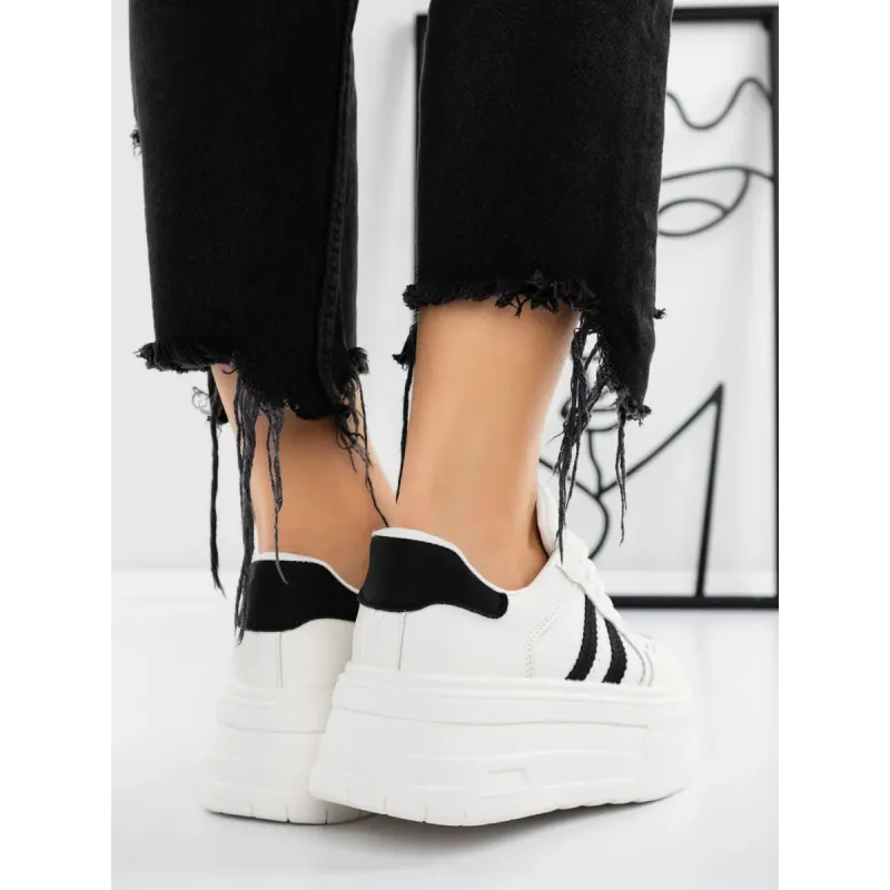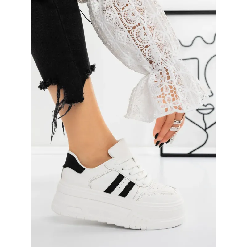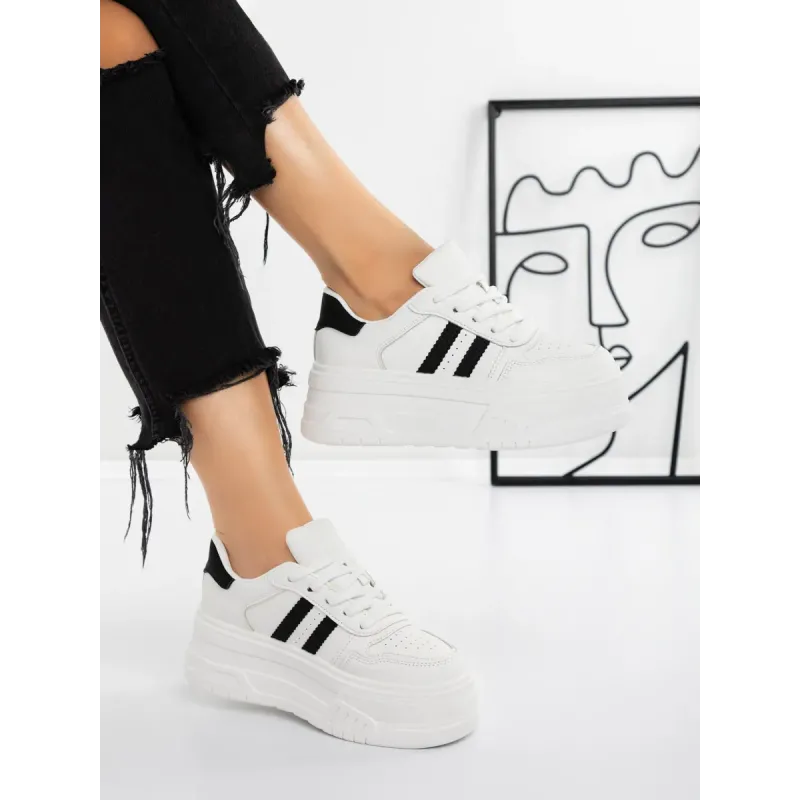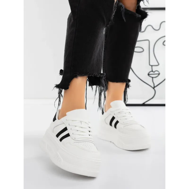 Pantofi Sport Dama cu Platforma 5WL50 Negru-Alb | Mei