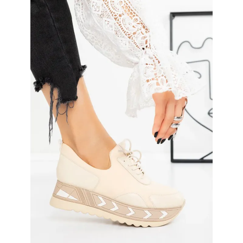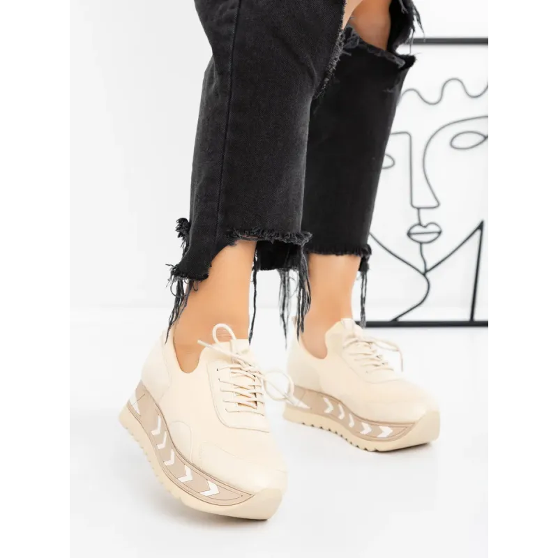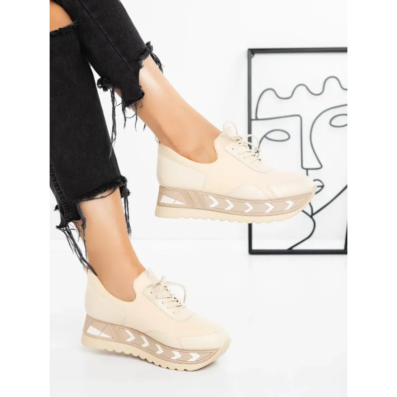 Pantofi Sport Dama cu Platforma 3AGZ125 Bej | Mei