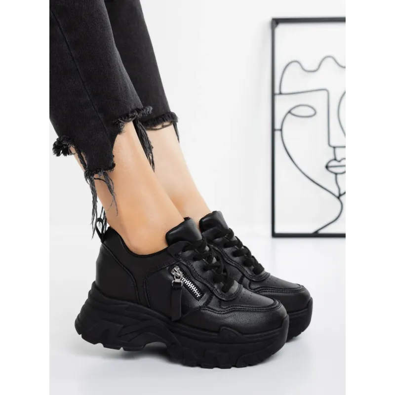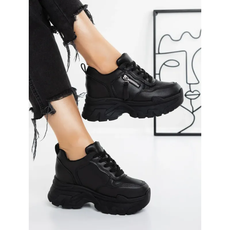 Pantofi Sport Dama cu Platforma 5WL52 Negru | Mei