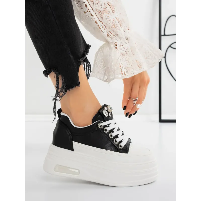 Pantofi Sport Dama cu Platforma 5WL53 Negru | Mei