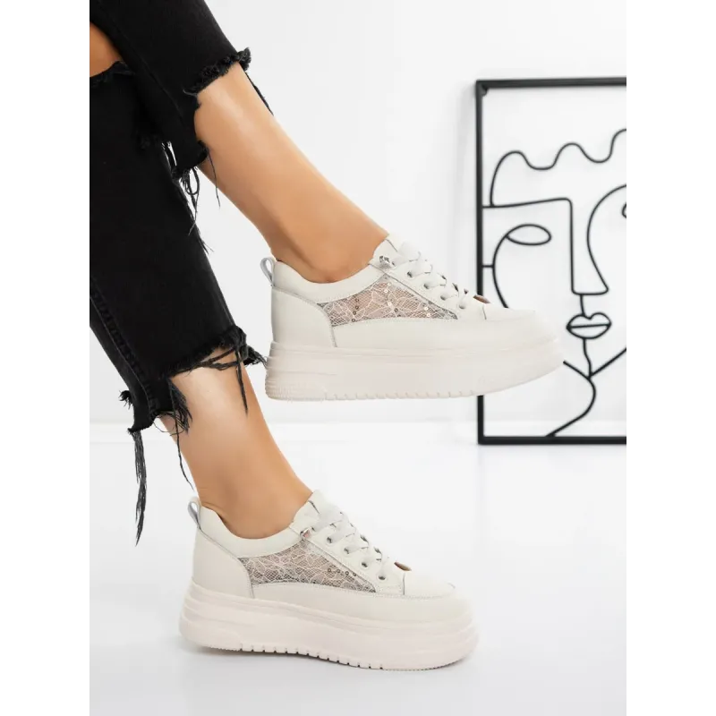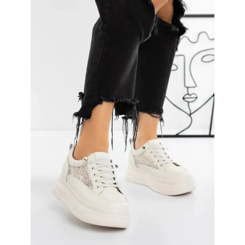 Pantofi Sport Dama cu Platforma 5WZ8 Alb | Mei