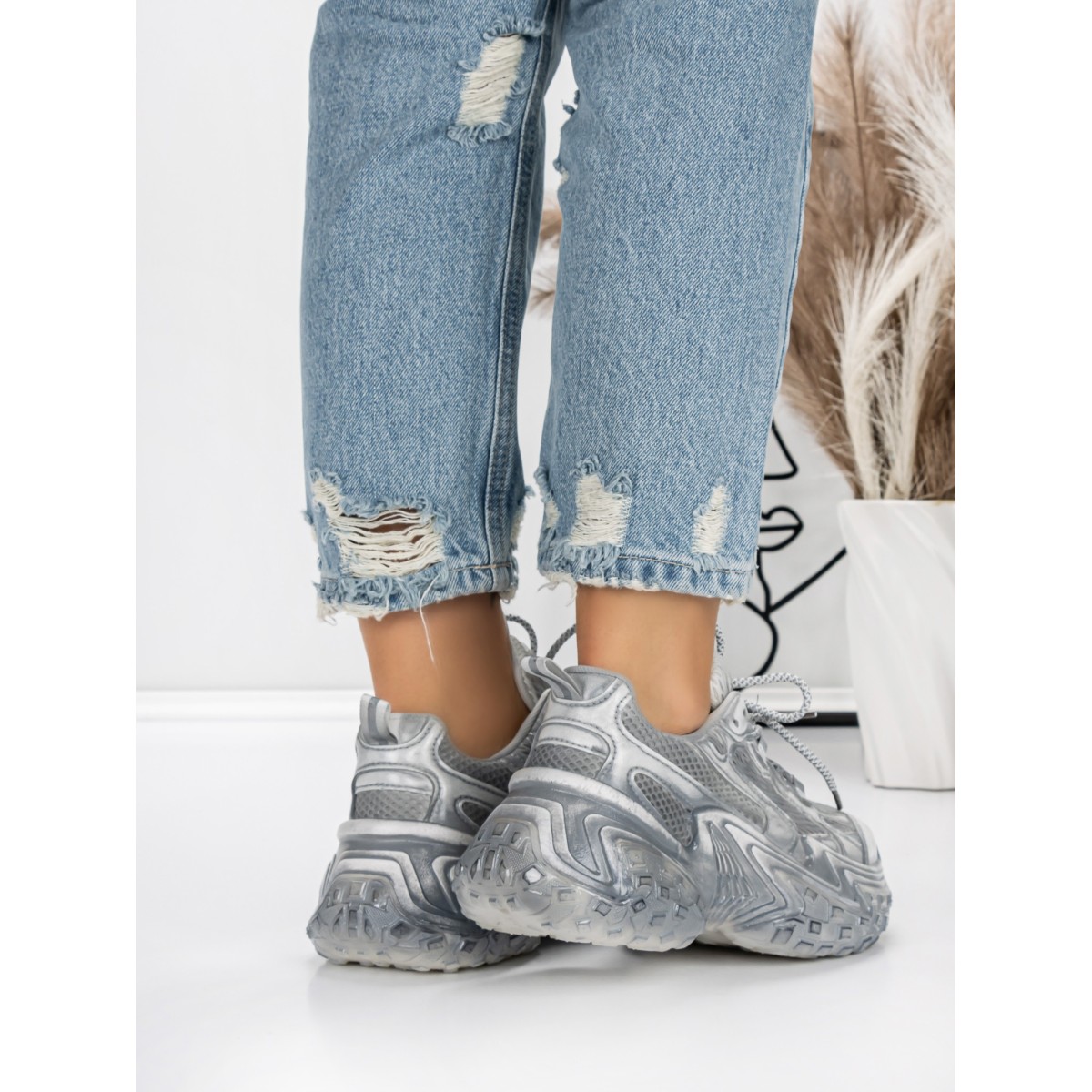 Pantofi Sport Dama cu Platforma 5WL83 Argintiu | Mei
