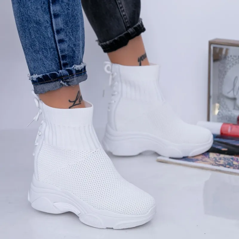 Pantofi Sport Dama cu Platforma WL132 Alb » Reina.Ro