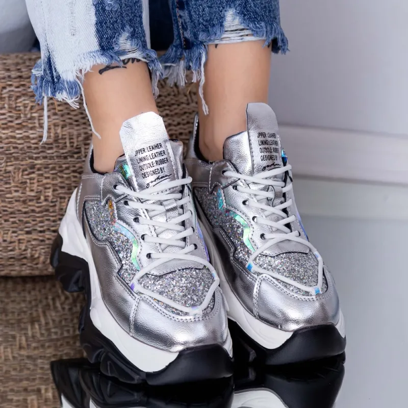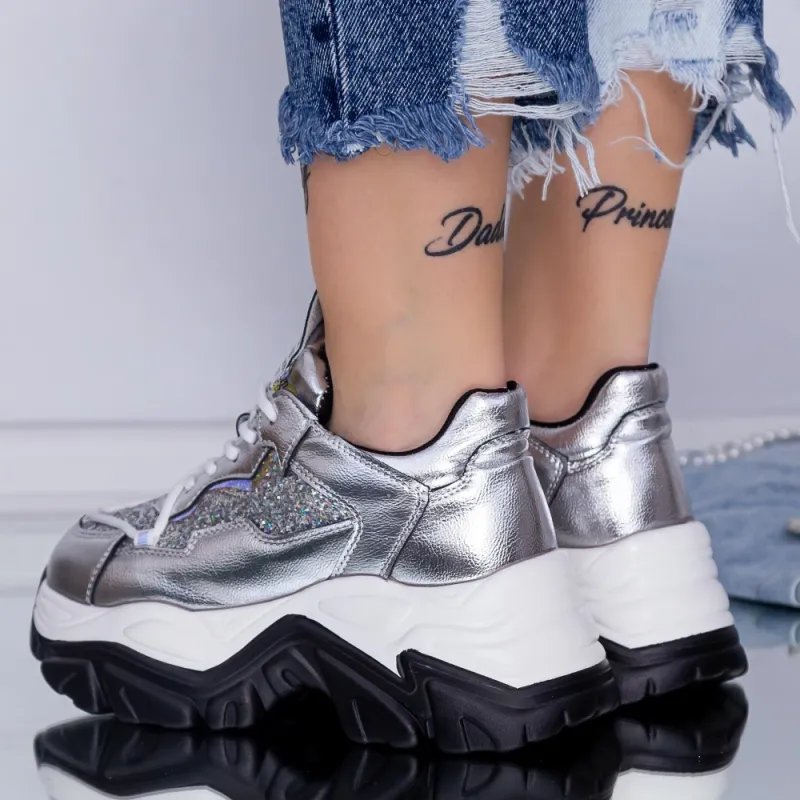 Pantofi Sport Dama cu Platforma WL259 Argintiu (A19) Mei