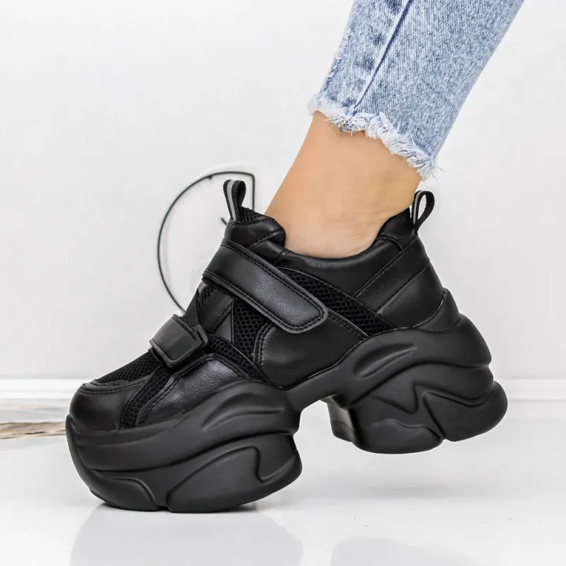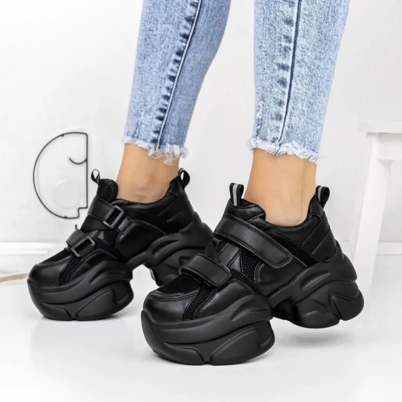 Pantofi Sport Dama cu Platforma 3WL71 Negru | Reina